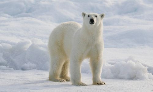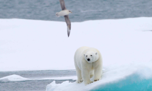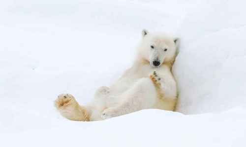北极熊,世界上最大的陆上食肉动物之一,雄性可达300至650公斤,是动物中的“左撇子”,嗅觉是犬类的七倍,奔跑时速最快60km/h,海豹是它的第一美食。北冰洋附近有浮冰的海域是其主要活动范围。世界上野生北极熊目前稳定在二万多只。雄性一般都独来独往。鼻子上一圈红色估计是破冰捕猎时受的伤母子出现了一母二...