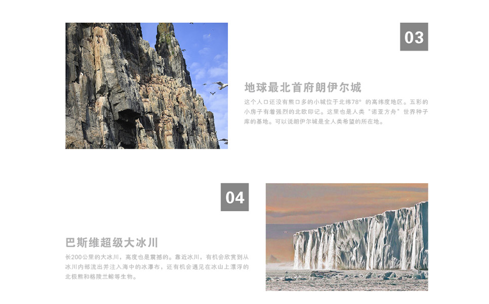 菲普斯岛:位于斯瓦尔巴德群岛中的东北岛,这里我们将穿越北纬81度,是北极熊常出没的地方。还可见象牙海鸥。