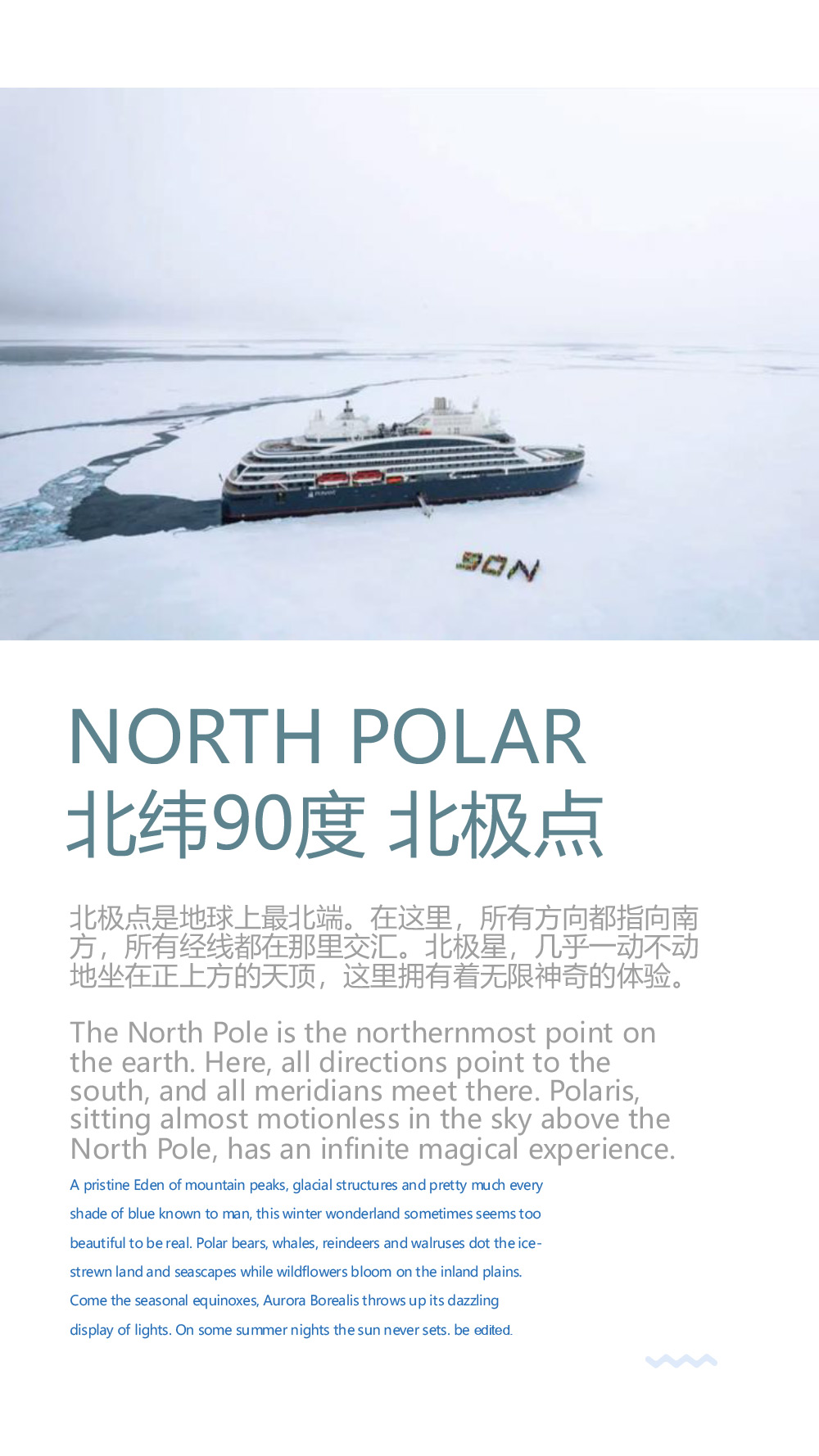 90°N——地理北极点,是地球的最北端,也被认为是地球的顶部。登上北极点,意味着登陆地球之巅,是人生中充满仪式感的时刻!