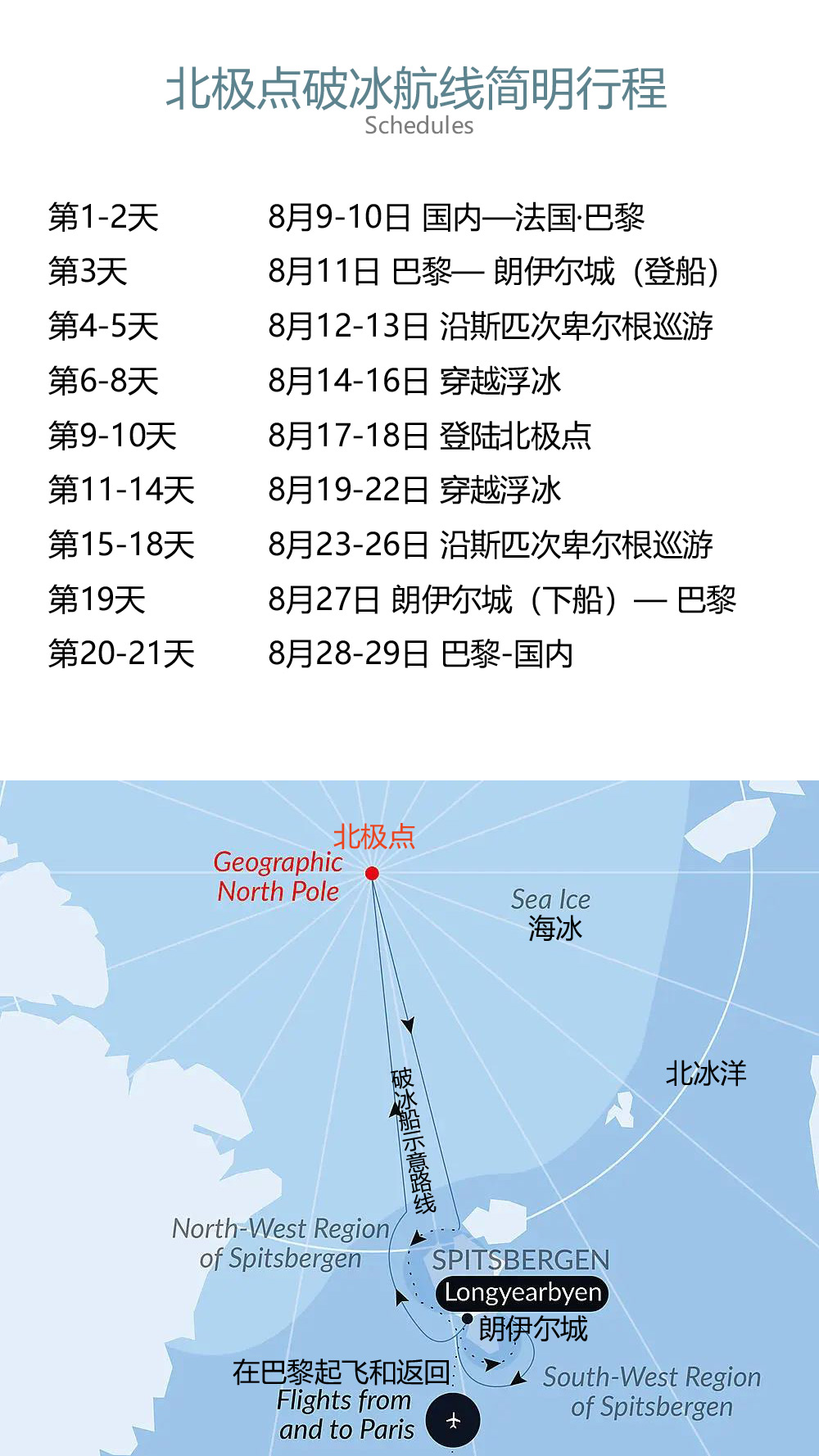 指定时间于机场集合,搭乘航班飞往法国的浪漫之都——巴黎,在此休整一晚,准备次日启航的北极点征途。
