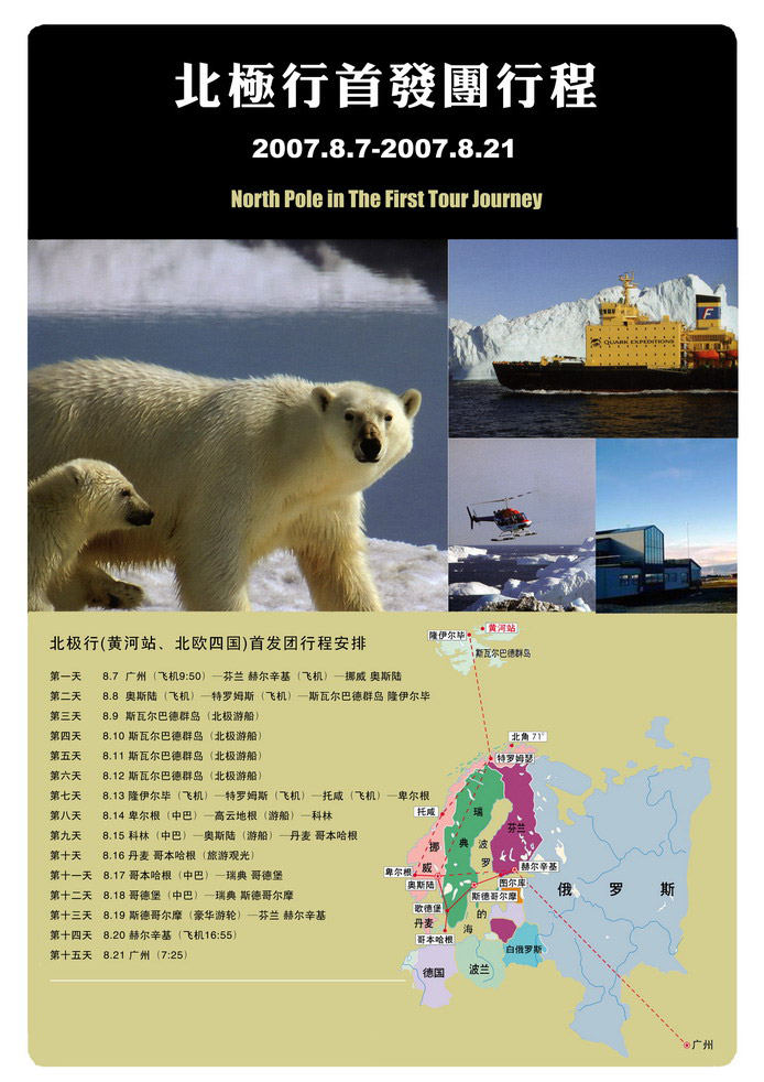 八月七日,以广州极至俱乐部精英会员为主体组成的“活力广东•北极行首发团”一行16人,将飞往由北欧挪威管辖的位于北纬78º55'的北极斯瓦尔巴群岛,乘坐环保破冰游船环游群岛,拜访“中国黄河站“,亲身感受全球变暖带来的一系列变化。