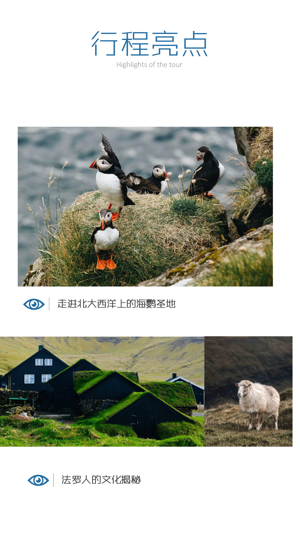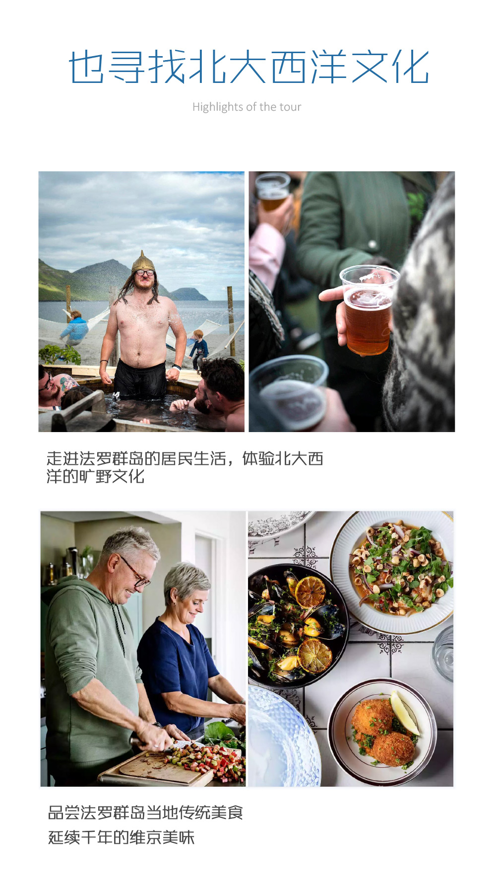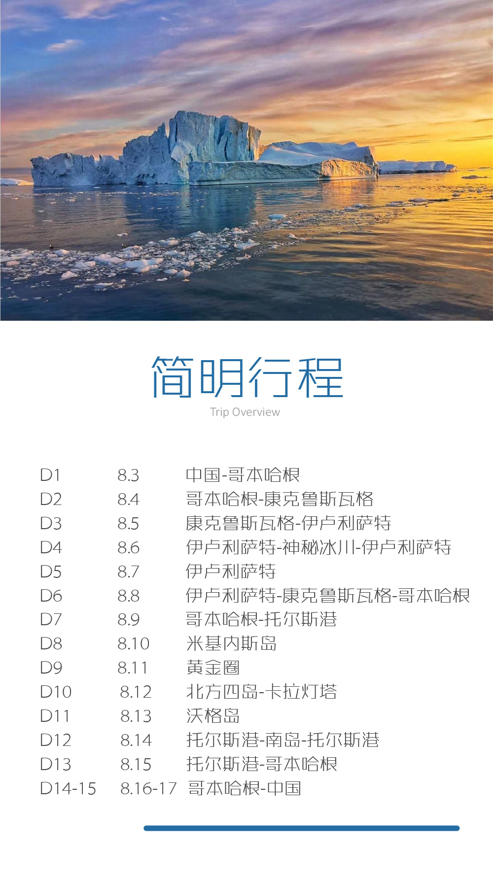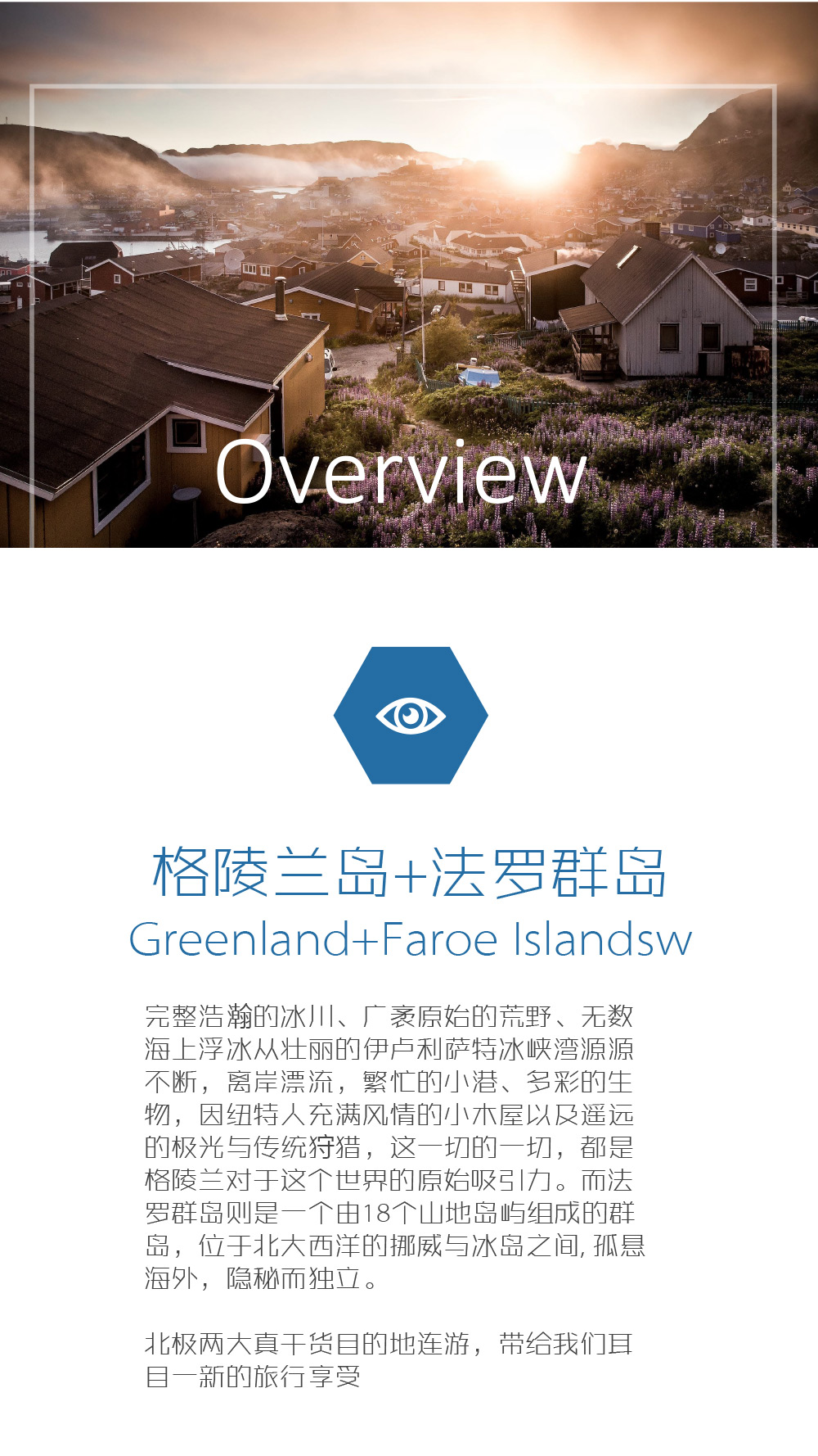 3晚连住伊卢利萨特深度玩转冰川之都;走访格陵兰岛的隐秘渔村遇见原汁原味因纽特文化;寻找法罗群岛最美机位;深度徒步探索法罗群岛最著名的地标圣象门; 游览康克鲁斯瓦格冰盖,并邂逅麝牛等野生动物;品尝格陵兰和法罗群岛美食;游览人少景美的北部四岛;品尝格陵兰和法罗群岛美食