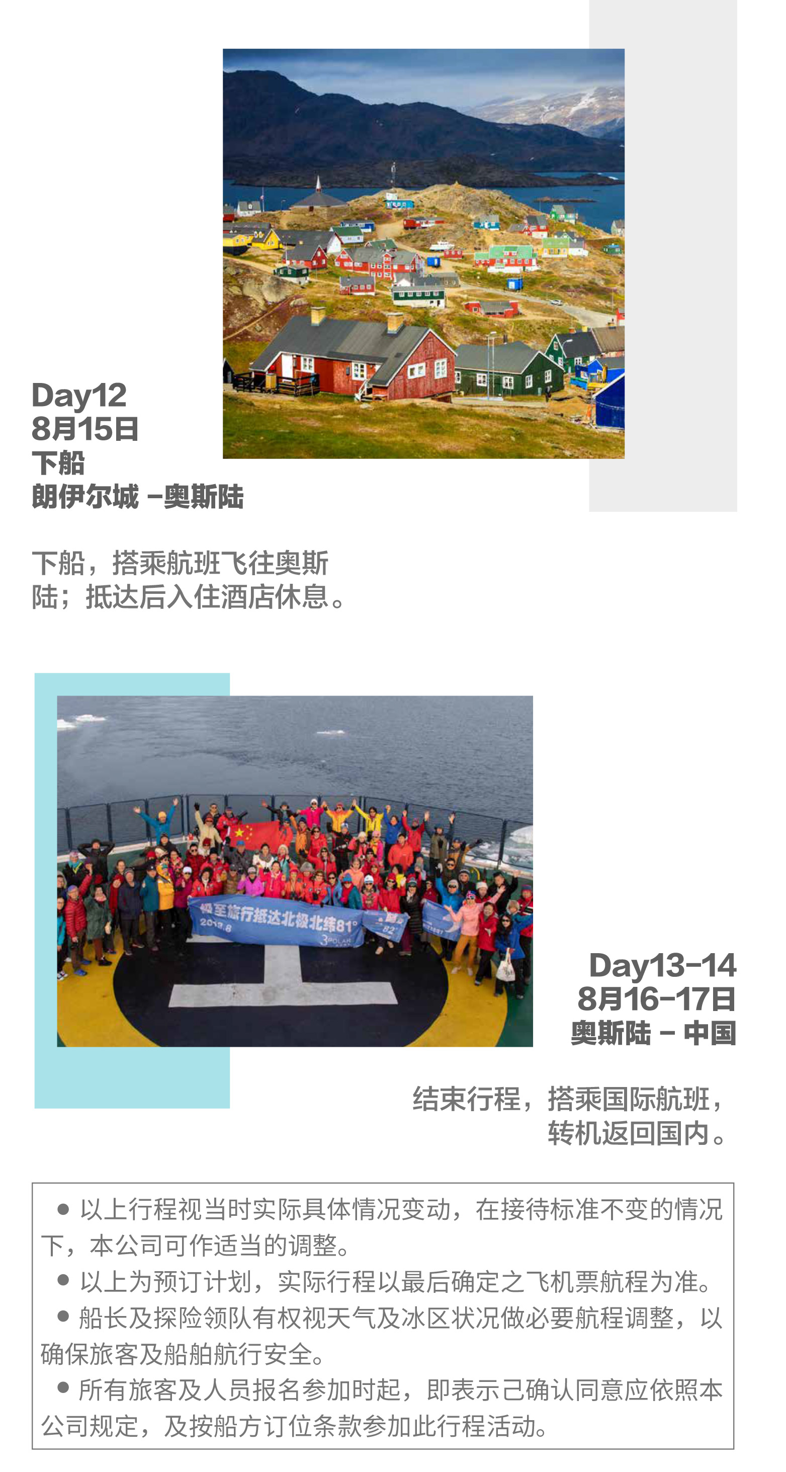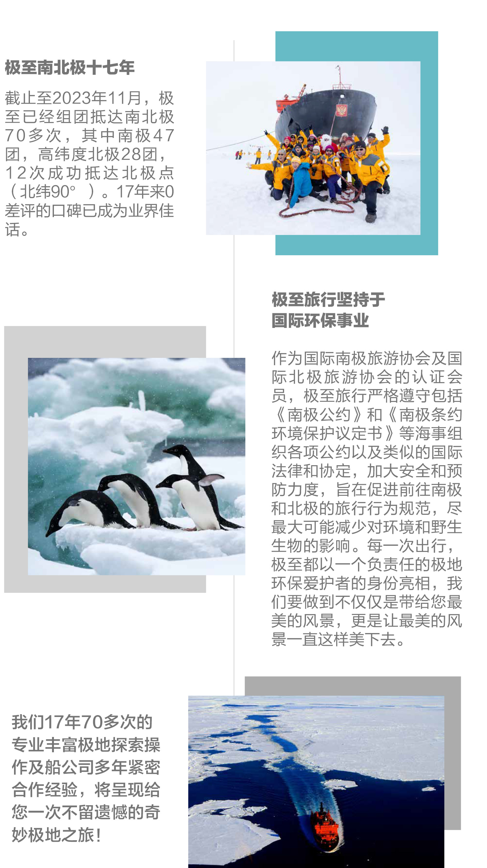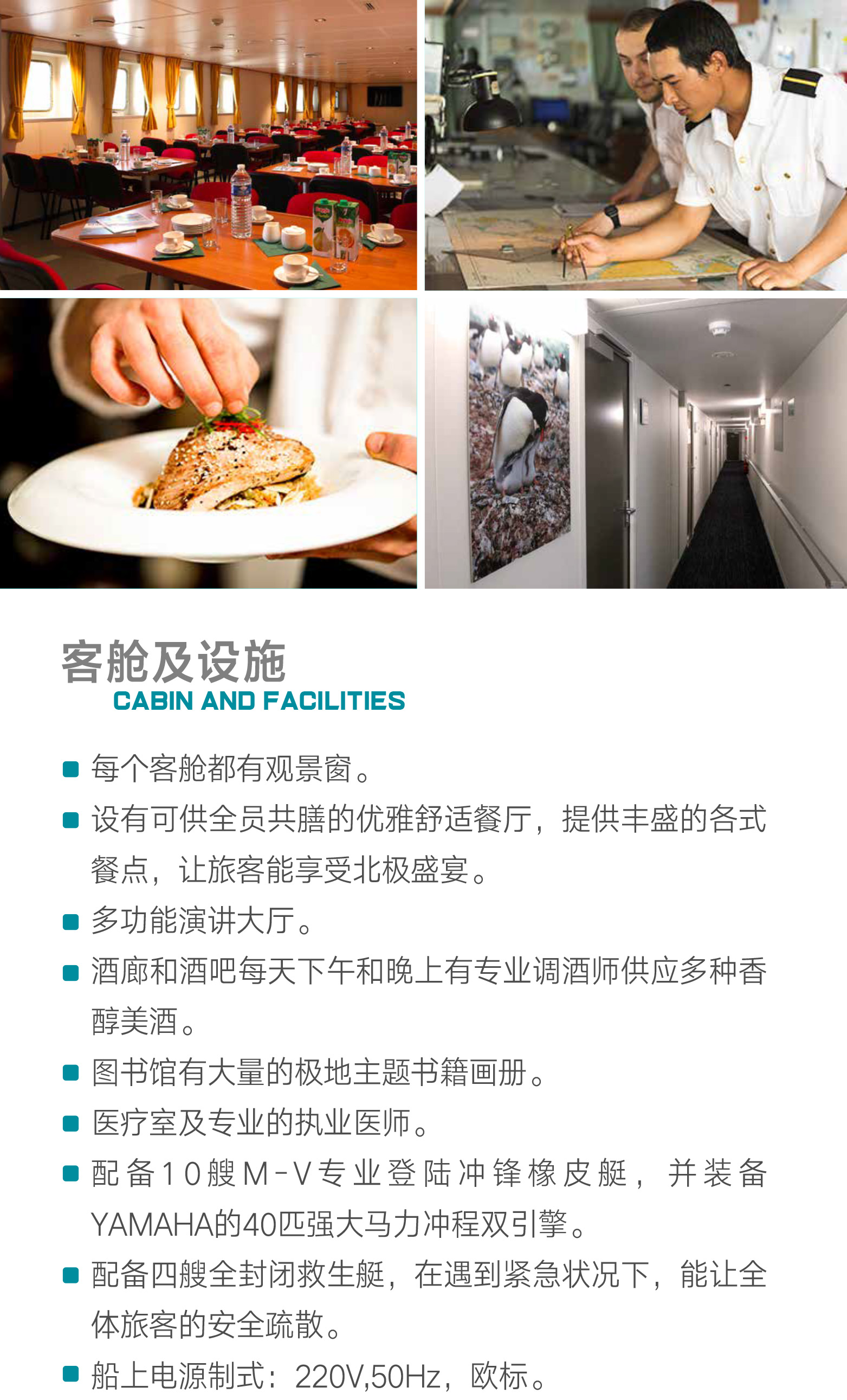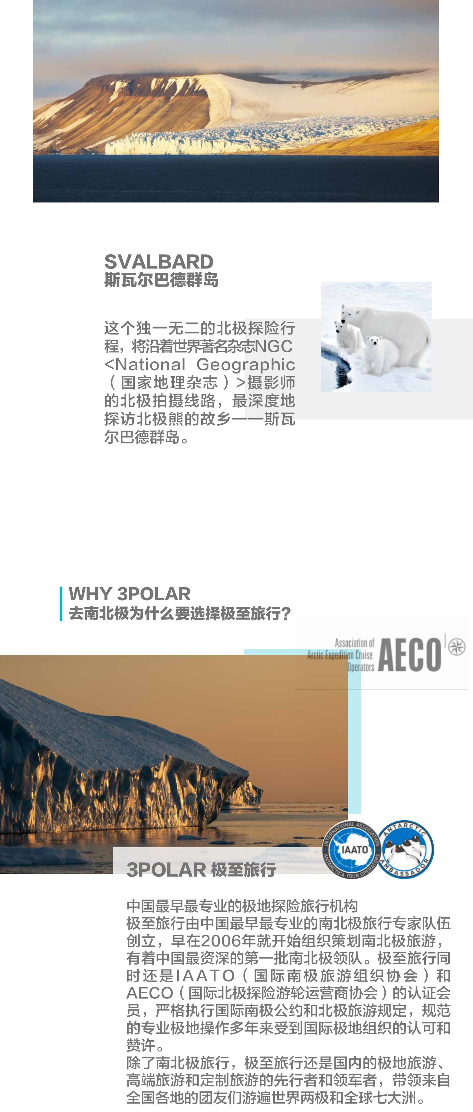 确保最大的几率近观北极熊;只限90游客最佳的活动体验;深度探访北极熊的故乡;有机会观看鲸、北极狐、海豹和海象;全面的北极风光地貌;有机会遇见数量庞大的海鸟