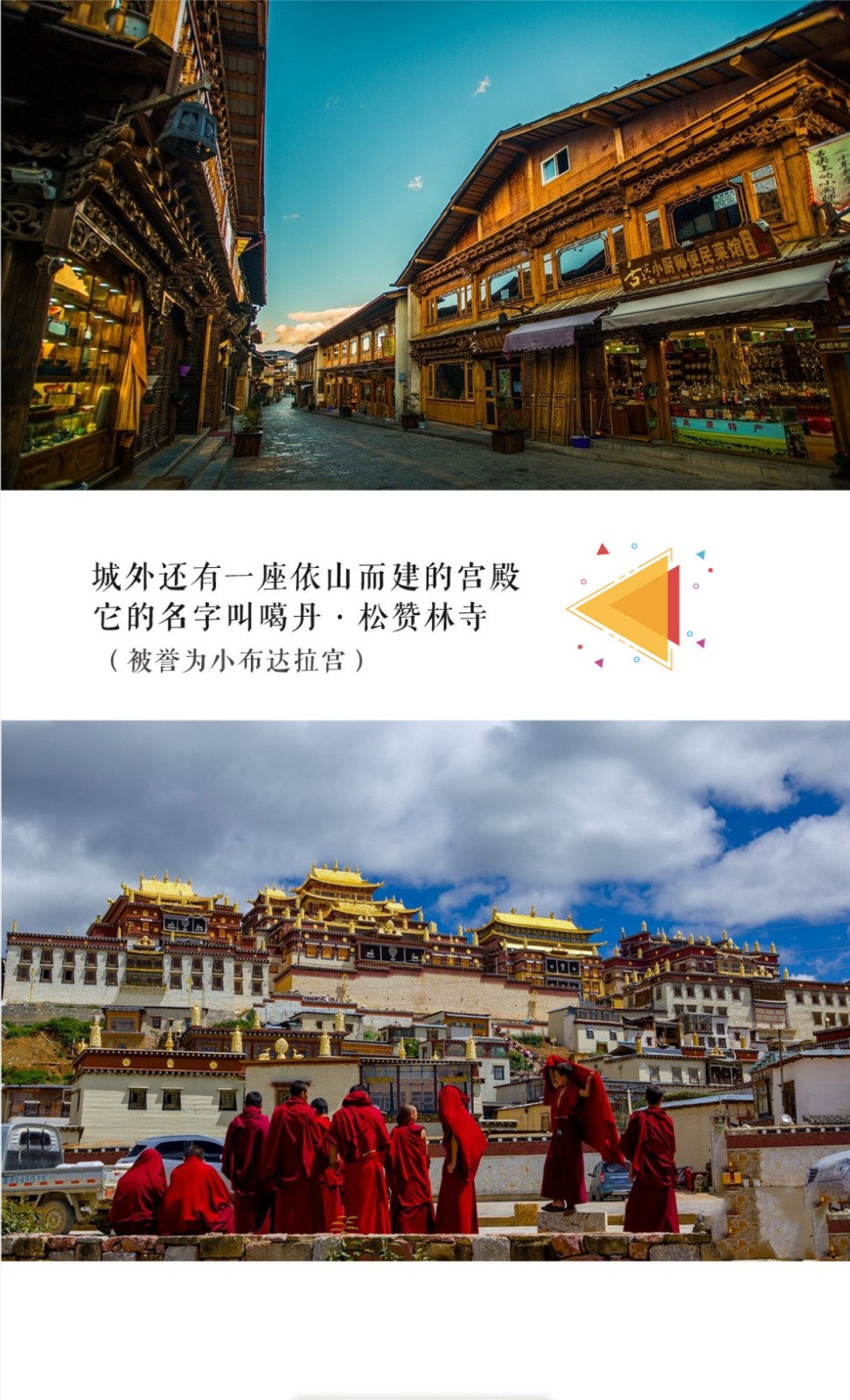 上午游览松赞林寺,通过寺院的壁画和僧人的课堂了解藏族的信仰文化。