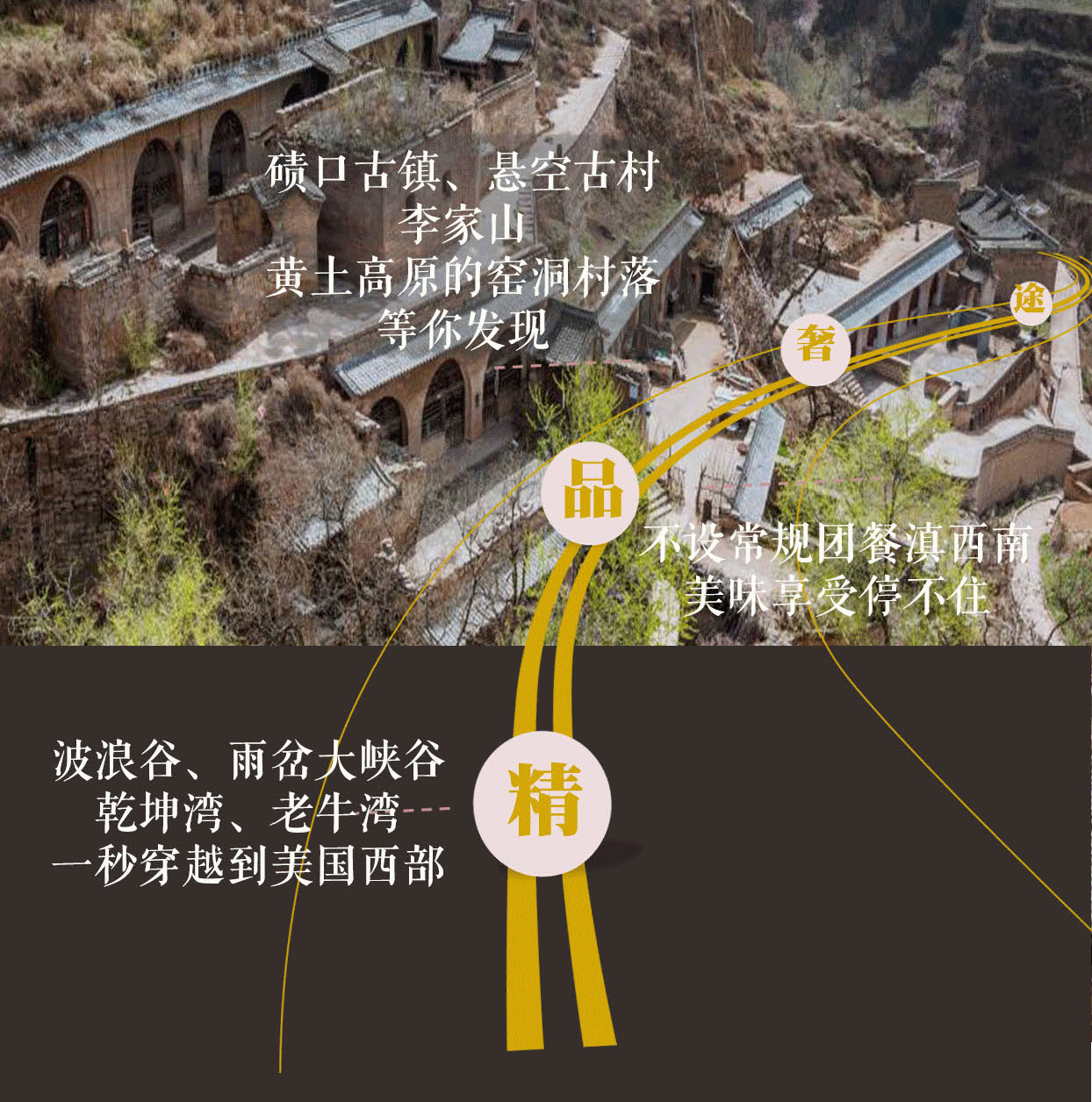 碛口古镇、悬空古寺、李家山村、黄土高原的窑洞村落等你发现,波浪谷、雨岔大峡谷、乾坤湾、老牛湾、一秒穿越到美国西部,不设常规团餐 滇西南美味享受停不住,