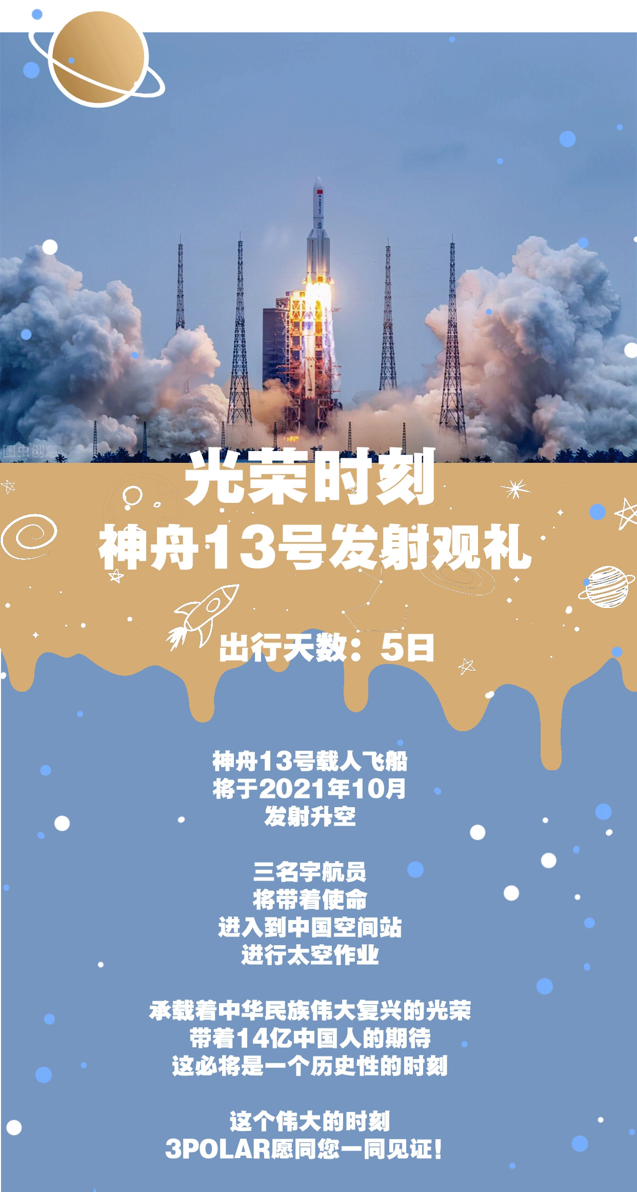 神舟13号载人飞船将于2021年10月发射升空 三名宇航员将带着使命进入到中国空间站进行太空作业 承载着中华民族伟大复兴的光荣 带着14亿中国人的期待 这必将是一个历史性的时刻 这个伟大的时刻3POLAR愿同您一同见证!