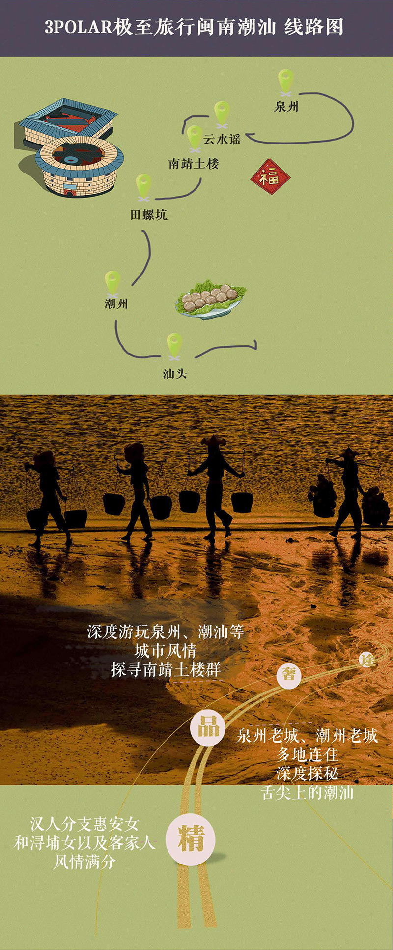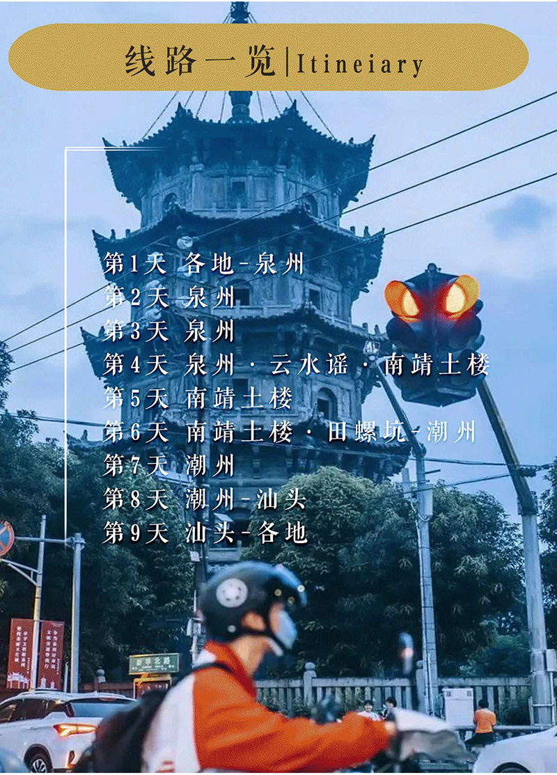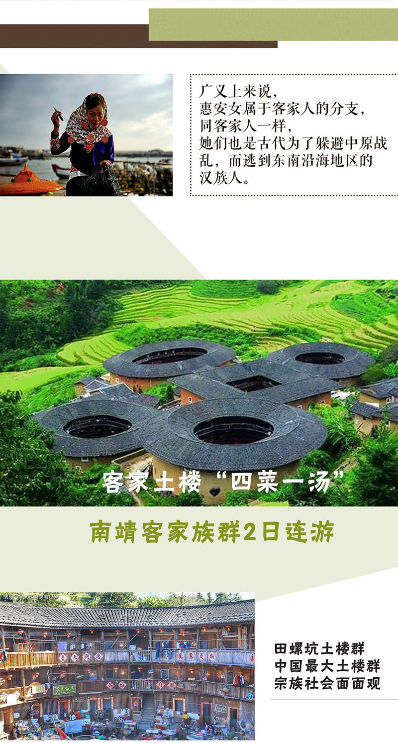 深度游玩泉州、潮汕等城市风情 探寻南靖土楼群;泉州老城、潮州老城、多地连住 深度探秘 舌尖上的潮汕;汉人分支惠安女和浔埔女以及客家人风情满分