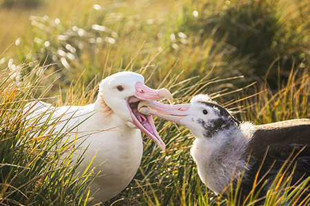 | 7.最大机会欣赏巨型象海豹求偶打斗的极致狂野。 | 8.有机会进入信天翁保育区,超近距离拍摄信天翁哺育的温馨场景。 |