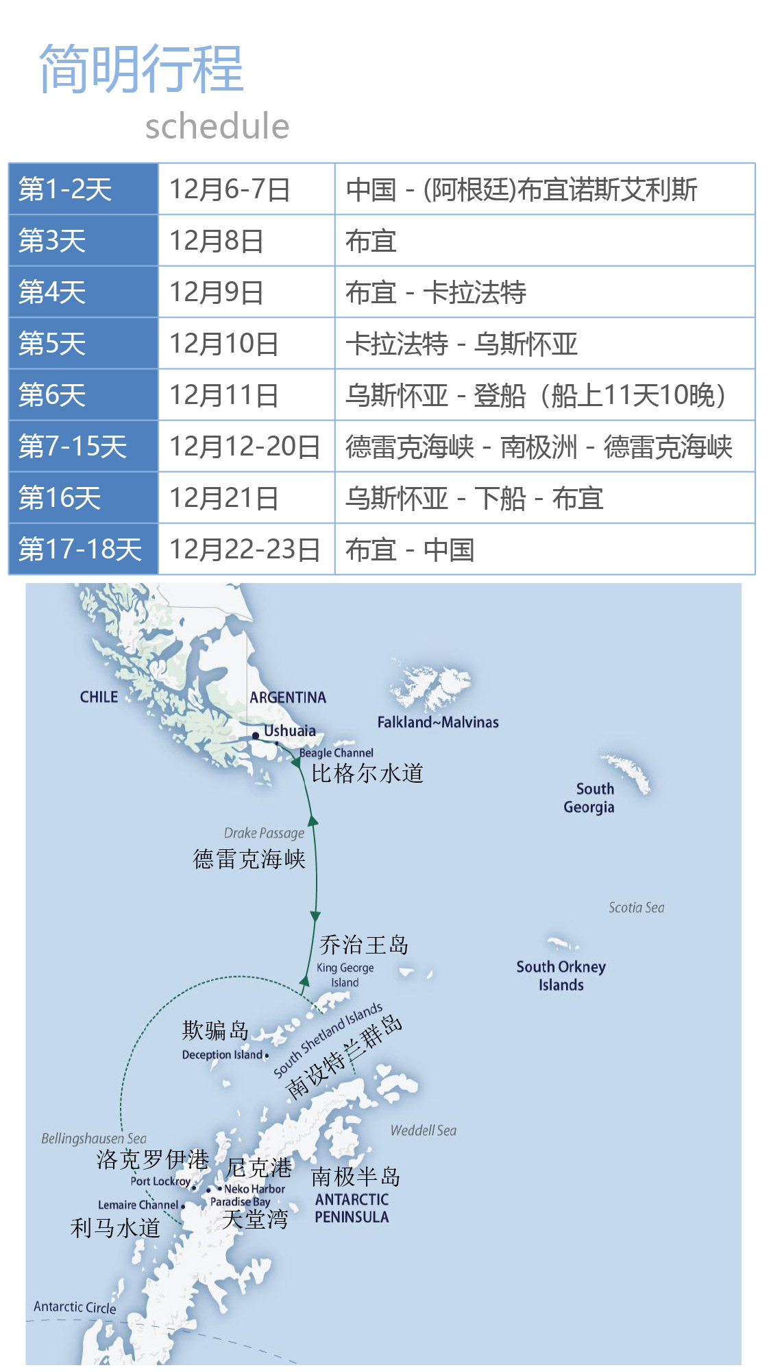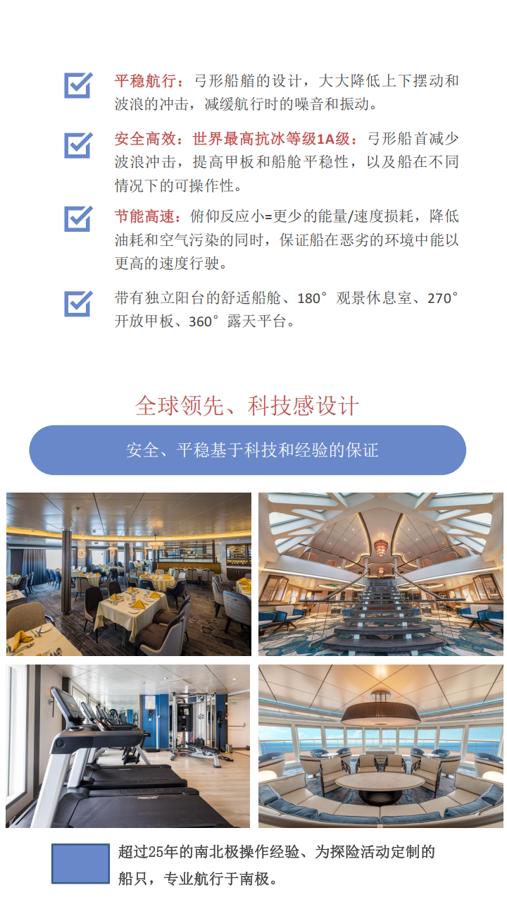 重要提示: 我们有义务告知您,在南极地区的所有活动都可能会受到天气变化的影响,船方不会进行任何有可能损害旅行者和工作人员安全的独特旅行体验的行动。