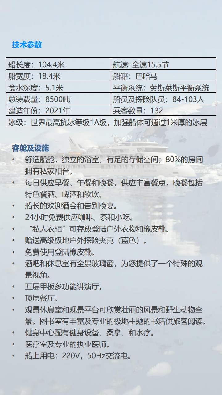 3. 南极抗冰船双人间的1/2舱位;