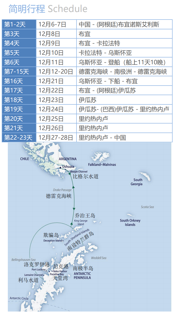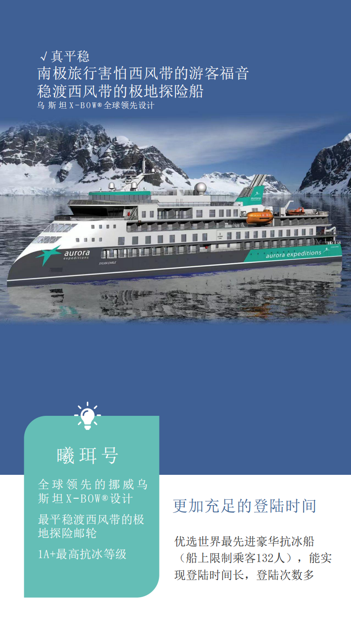 重要提示: 我们有义务告知您,在南极地区的所有活动都可能会受到天气变化的影响,船方不会进行任何有可能损害旅行者和工作人员安全的独特旅行体验的行动。