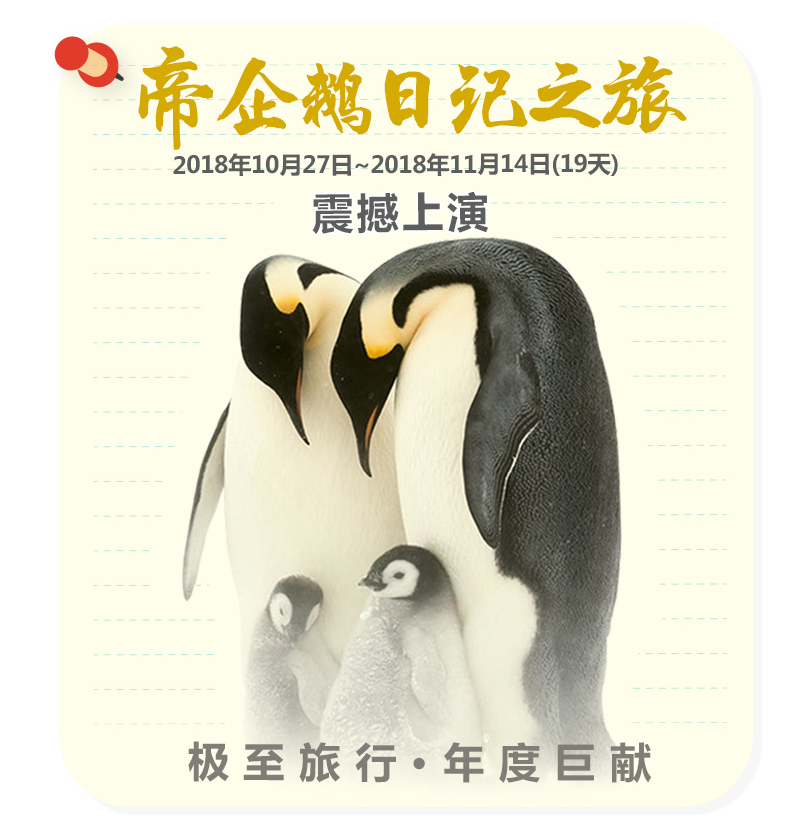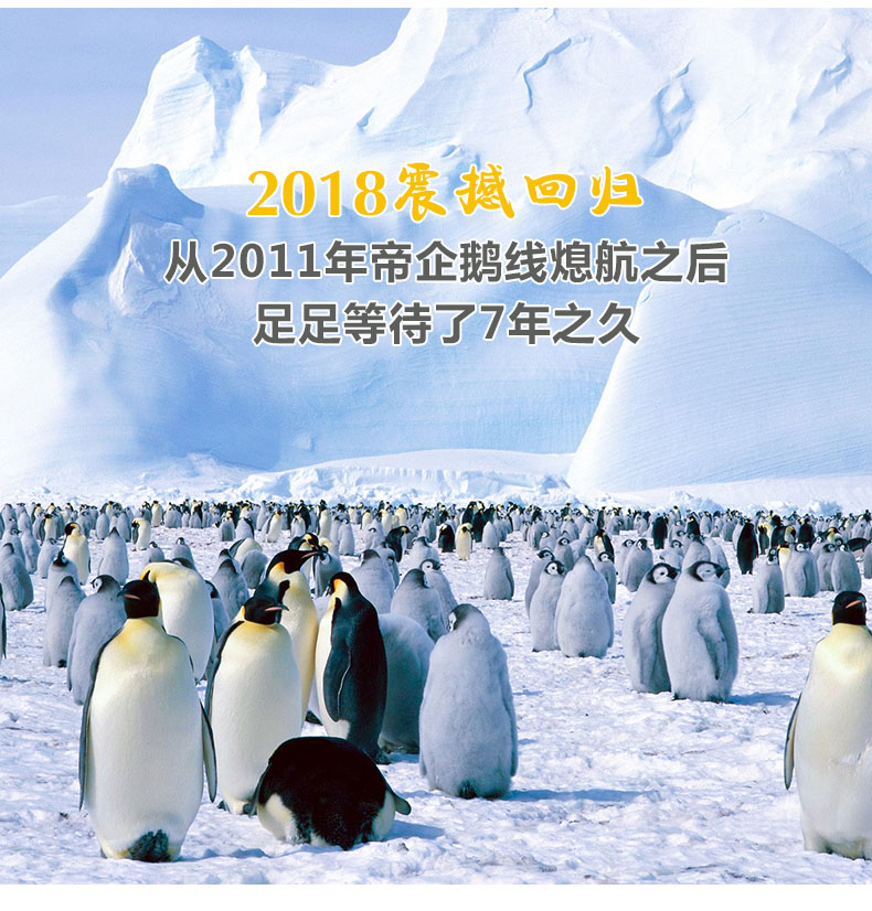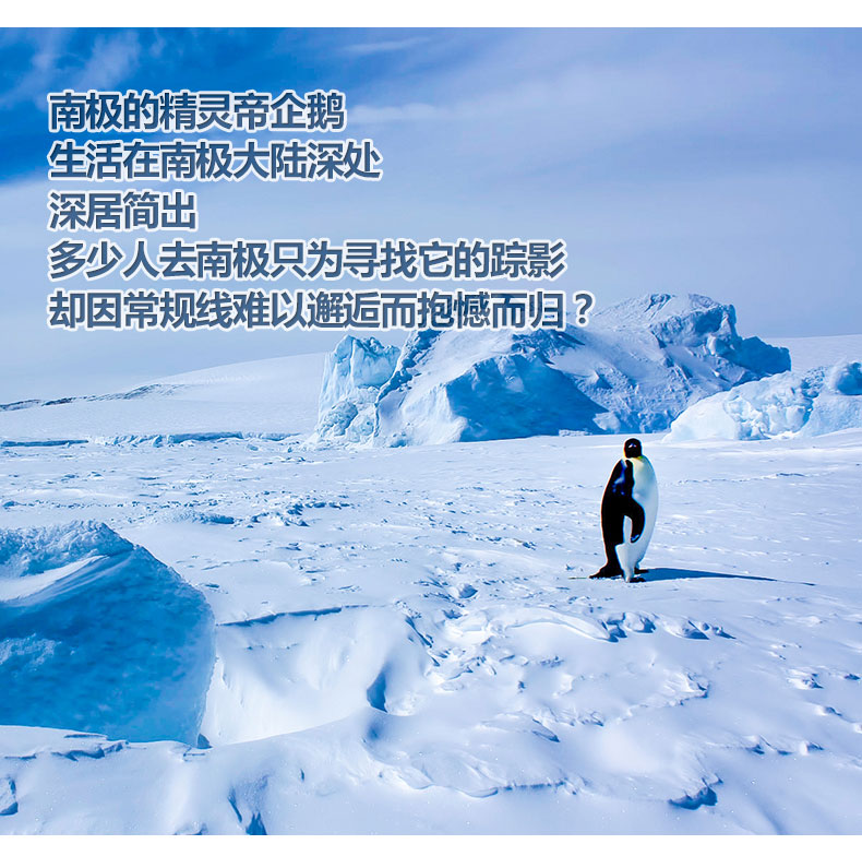 成年的帝企鹅可高达1.2米,最高的记录是1.7米!我们不但有机会看到高大的成年帝企鹅,还有机会看到一些嗷嗷待哺的小企鹅坐在父母的大脚上,或者是在企鹅社区中的小企鹅开始结群行走。您还有机会捕捉到令人惊叹的一幕:一连串的成年帝企鹅从海上列队行走或者滑行到群栖地上去喂哺它们的小企鹅,随后它们又转过身回去海里继续捕食。仔细倾听,一只成年企鹅在归家途中发出一声胜利般的鸣叫,它的小企鹅将会立刻辨识出父母的声音,像是吹口哨一般进行回应。