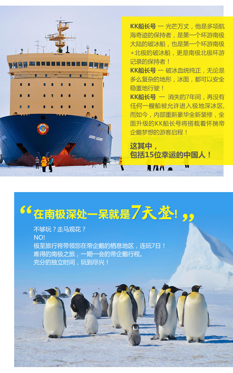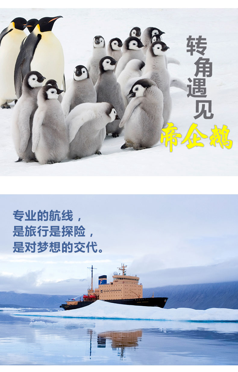 搭乘传奇破冰船KK船长号/深入南极大陆的帝企鹅腹地/饱览南极壮观美景