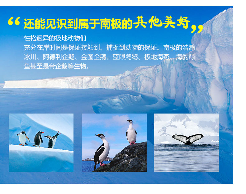 在前行极地途中,信天翁、海燕、鲸和海豚们一路相伴,您还会见到本次旅途的第一座冰山。