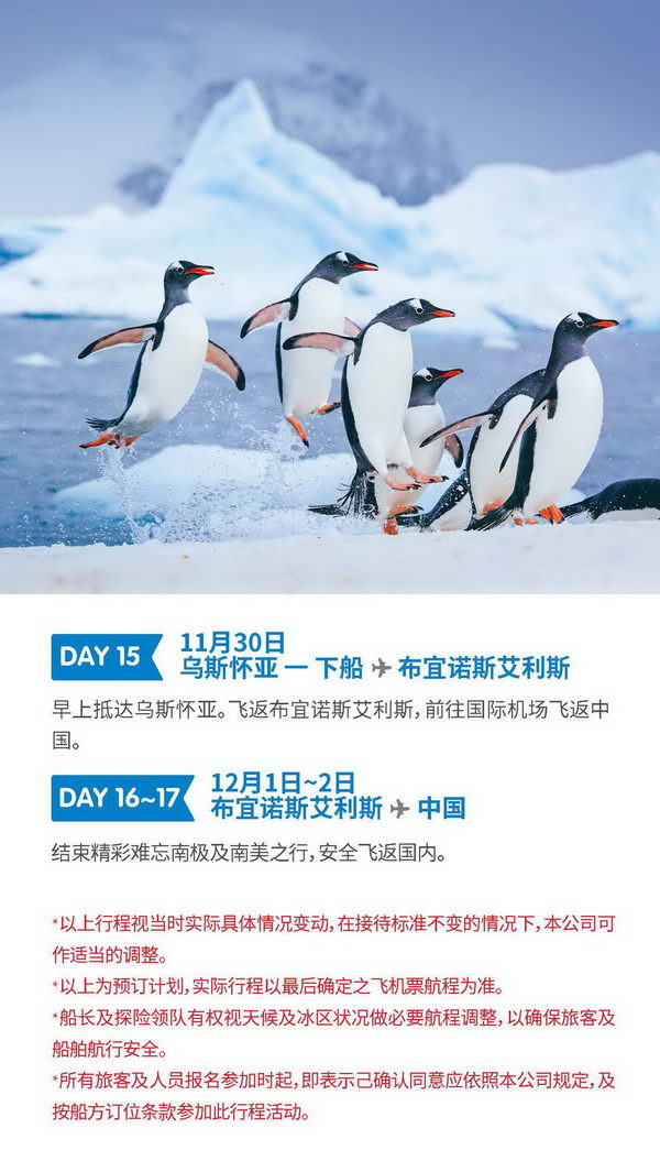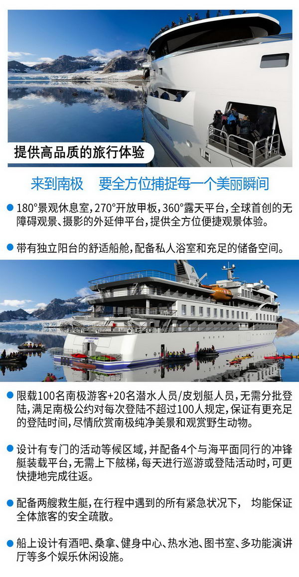 最先进1号邮轮/企鹅求偶最活跃期/气候最稳定风景最美季节/登陆时间长达5天
