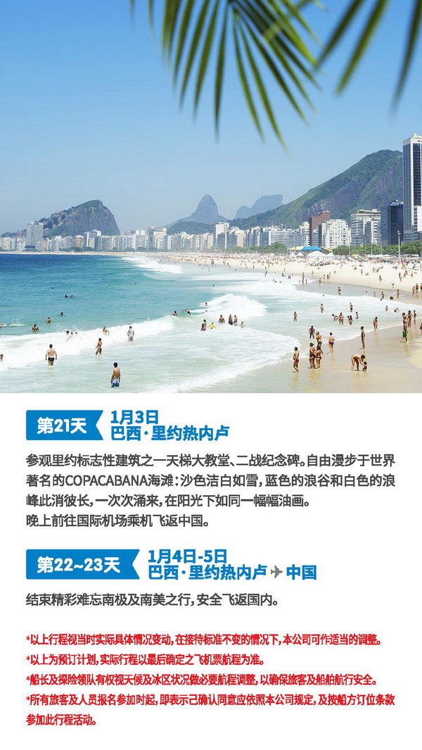 最先进1号邮轮/登陆活动长达6天/小企鹅开始出生/伊瓜苏瀑布/巴西里约