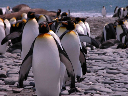 丹克岛:这里有长长的卵石海滩。在山顶上能看到金图企鹅筑巢,还有雪燕,贼鸥,蓝眼海鸭。
