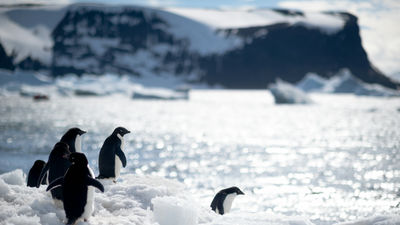 布朗断崖:被冰盖覆盖的褐色悬崖,有很多阿德利企鹅。