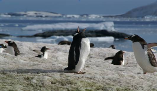 库佛维岛:人类所知的最大的金图企鹅领地。岛屿周围的浅水区经常导致浮冰搁浅,堆砌成壮观的冰山。这里的悬崖上面有着受保护且脆弱的地衣和苔藓类的南极植物,悬崖上还有贼鸥的窝。