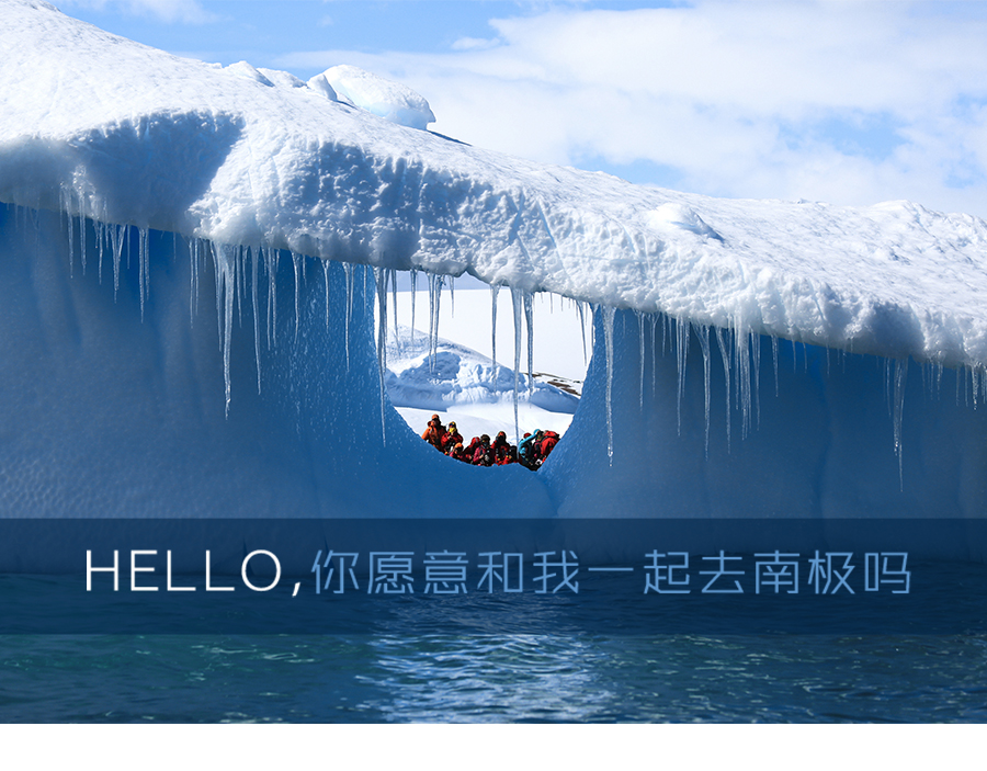 南极洲是地球上最后的净土,雄伟的雪山、幽蓝的冰山、冰封的大地、蔚蓝的海洋,这里的一切都是如此的纯净、美丽。船长和探险队长将会根据当天实时的天气、风、海浪及冰冻情况,选择极地探险项目和在南极地区航行的路线;您不但可以在甲板上感受南极的魅力,还可以乘坐橡皮艇巡游和上岸,零距离接触南极,欣赏壮丽景色的同时,还能观赏各种可爱有趣的极地生物。