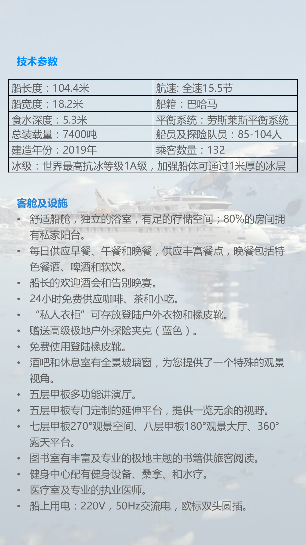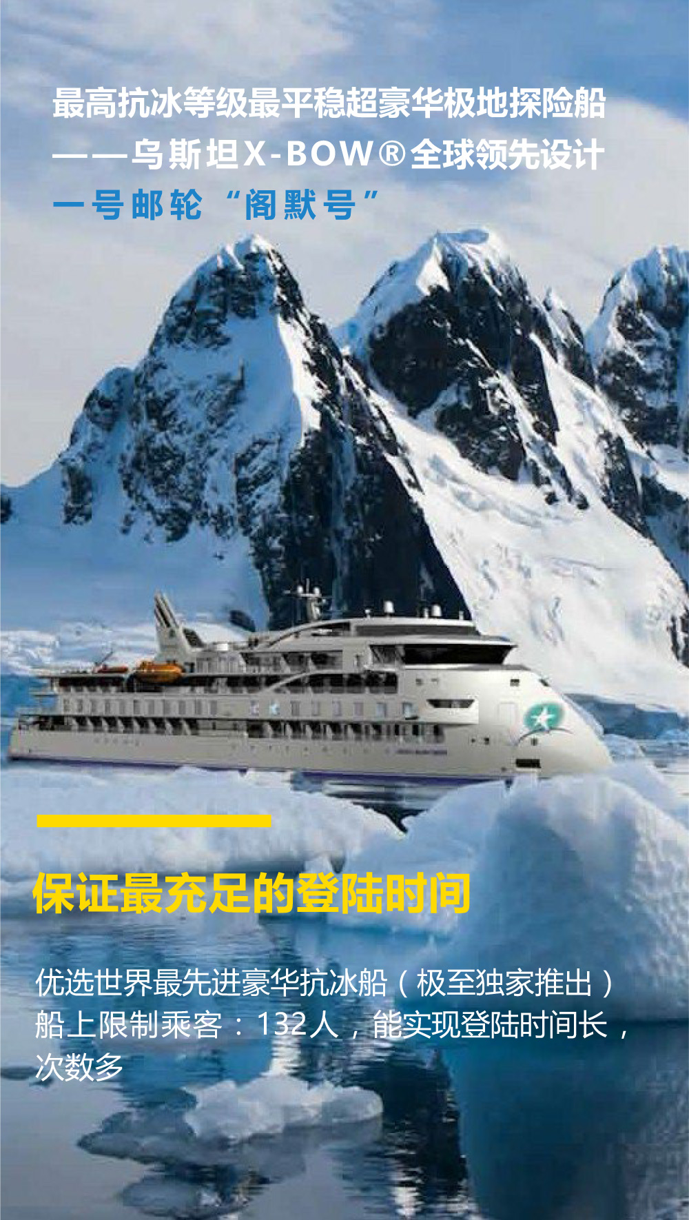 甄选科技型极地抗冰船,目前全球渡过西风带最平稳的船只,南极船上11天10晚 登陆活动时间长达5天!