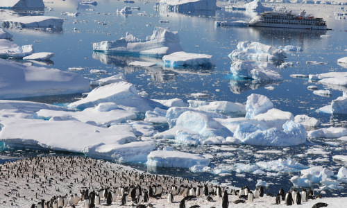 登陆南极大陆,造访南极科考站,也深入在海上冰山丛中巡游;搭乘...