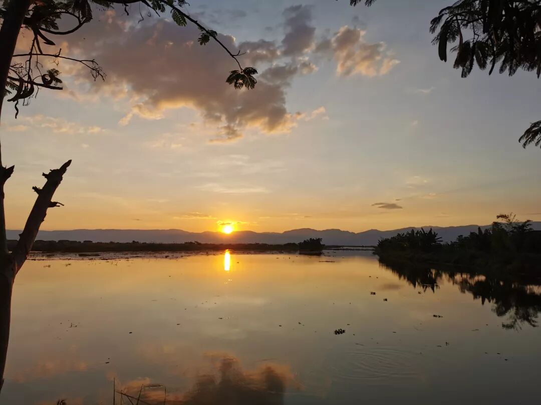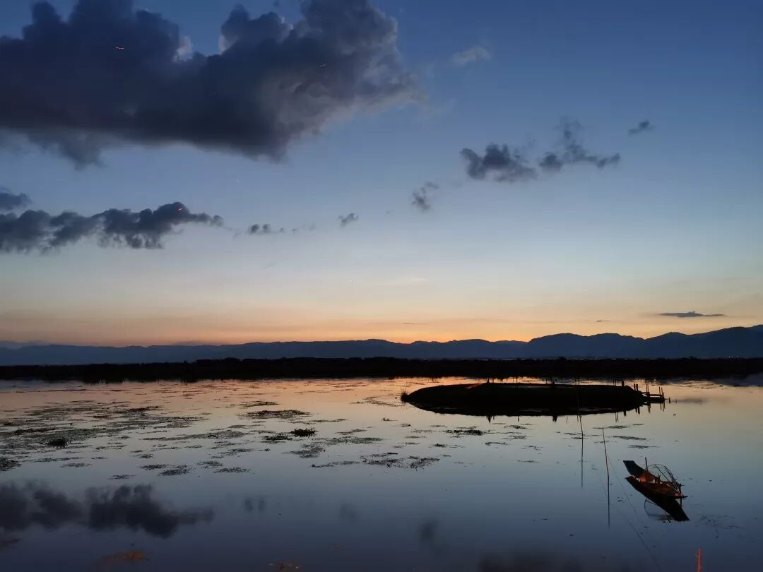 坐看落日余晖的大美,观一叶扁舟穿梭于水草中惊起一群鸥鹭,聆听平静湖面的吟唱。这一切都让我感悟到,茵莱湖人美好的生活是隐藏在贫穷与落后背后的坚定信仰、善良、微笑、知足与质朴。