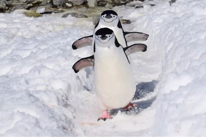 听着身旁的企鹅“咕咕”的鸟语聊天