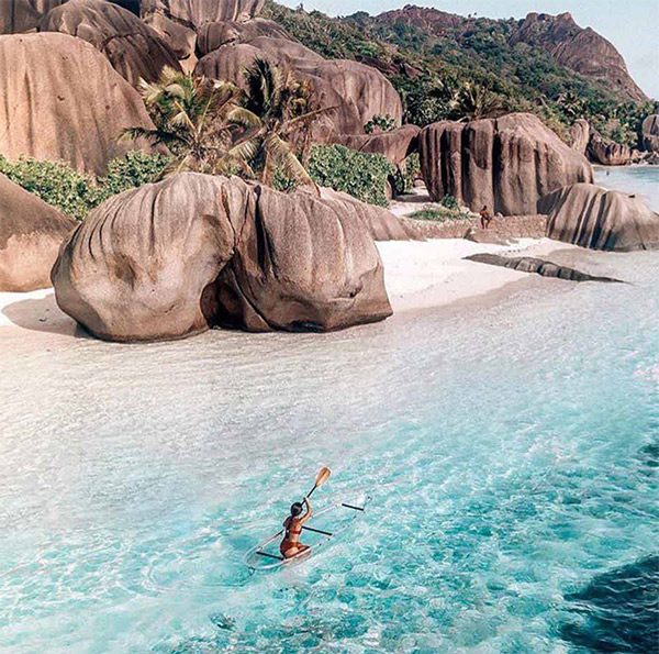 随后乘船前往拉迪格岛,登岛后前往德阿让海滩。 德阿让被美国《国家地理》杂志多次评为世界十大海滩的榜首,果冻色的海水,是游客的最爱。德阿让海滩被一大片庄园所包围住。这座庄园曾经是岛上唯一一座作坊,经营着椰子油生产,今已变成了一处农业观光园。庄园的名称叫“椰子树干工厂”,也有人称之为“联合庄园”。