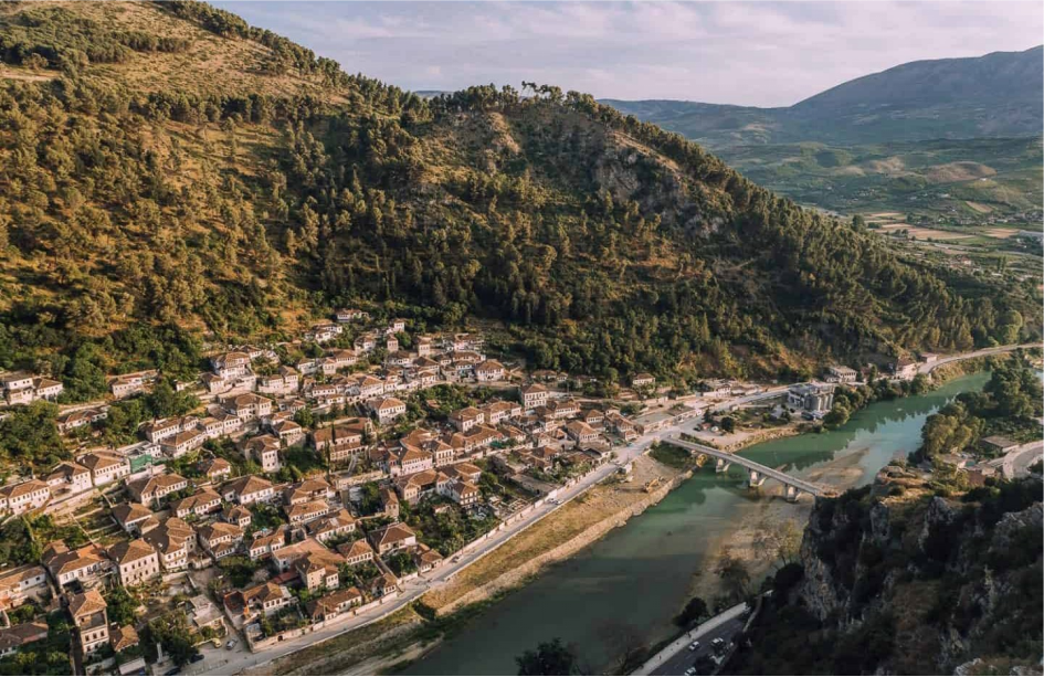 培拉特是阿尔巴尼亚的一个历史悠久的城市,被称为“城堡之城”。它位于阿尔巴尼亚中部,是一个拥有丰富文化遗产和美丽景观的城市。这里有许多古老的建筑,包括古城堡、清真寺、教堂和桥梁等。此外,培拉特还有美丽的河流和山脉,以其美食和葡萄酒而闻名,这里的餐厅和酒吧提供当地的特色菜肴和美味的葡萄酒。