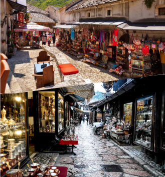 萨拉热窝老城区:有500多年历史,始建于土耳其统治时代。石块铺路的老街,两侧的建筑呈现出波斯尼亚民族风俗和土耳其式的风格,一排排的店铺错落有致。