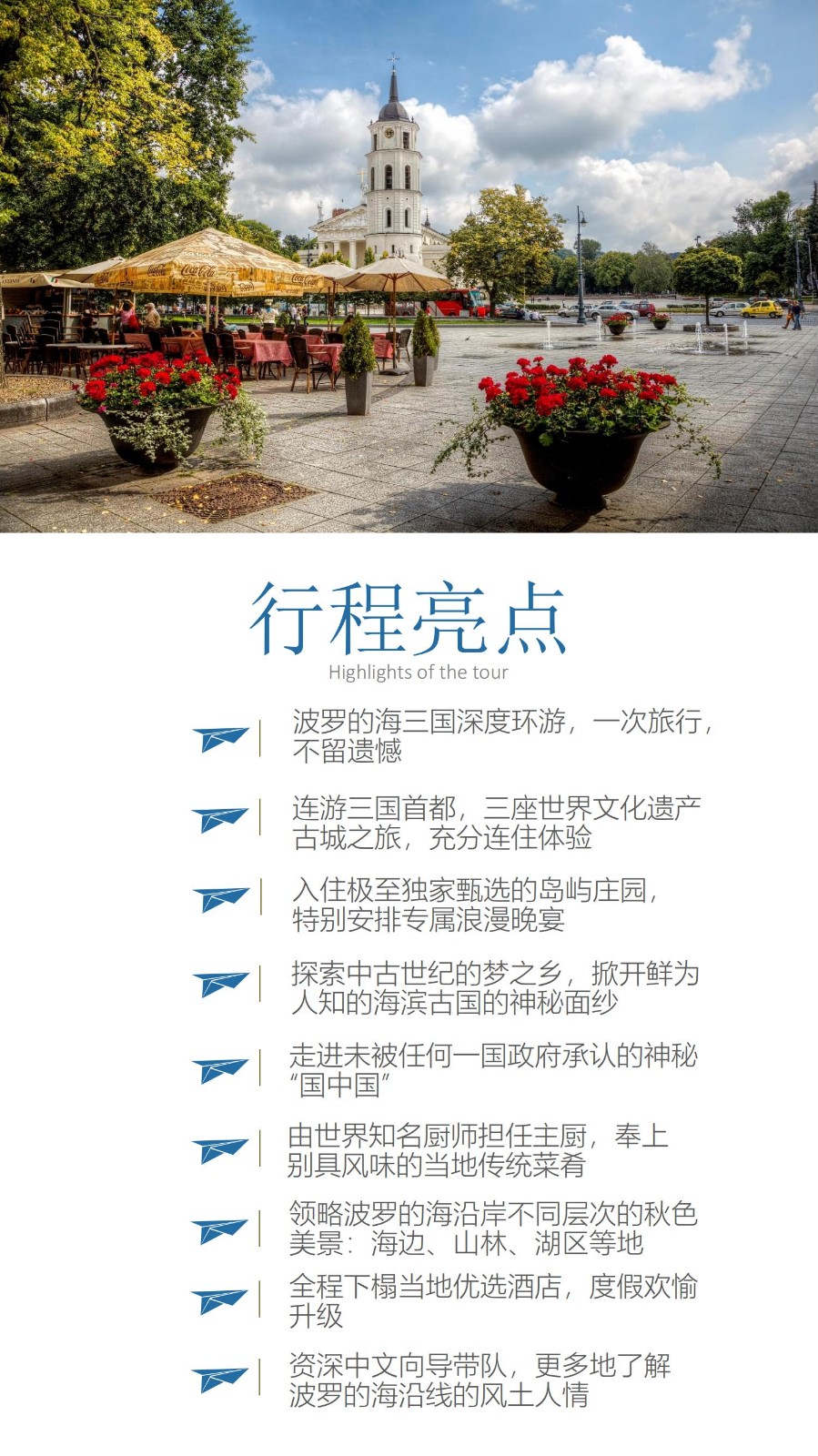 12天经典线路,覆盖十一假期,臻享惬意秋游;2日游览世界文化遗产古城——维尔纽斯;2日连住拉脱维亚首都里加;2日探索爱沙尼亚首都塔林,徜徉在“欧洲的十字路口