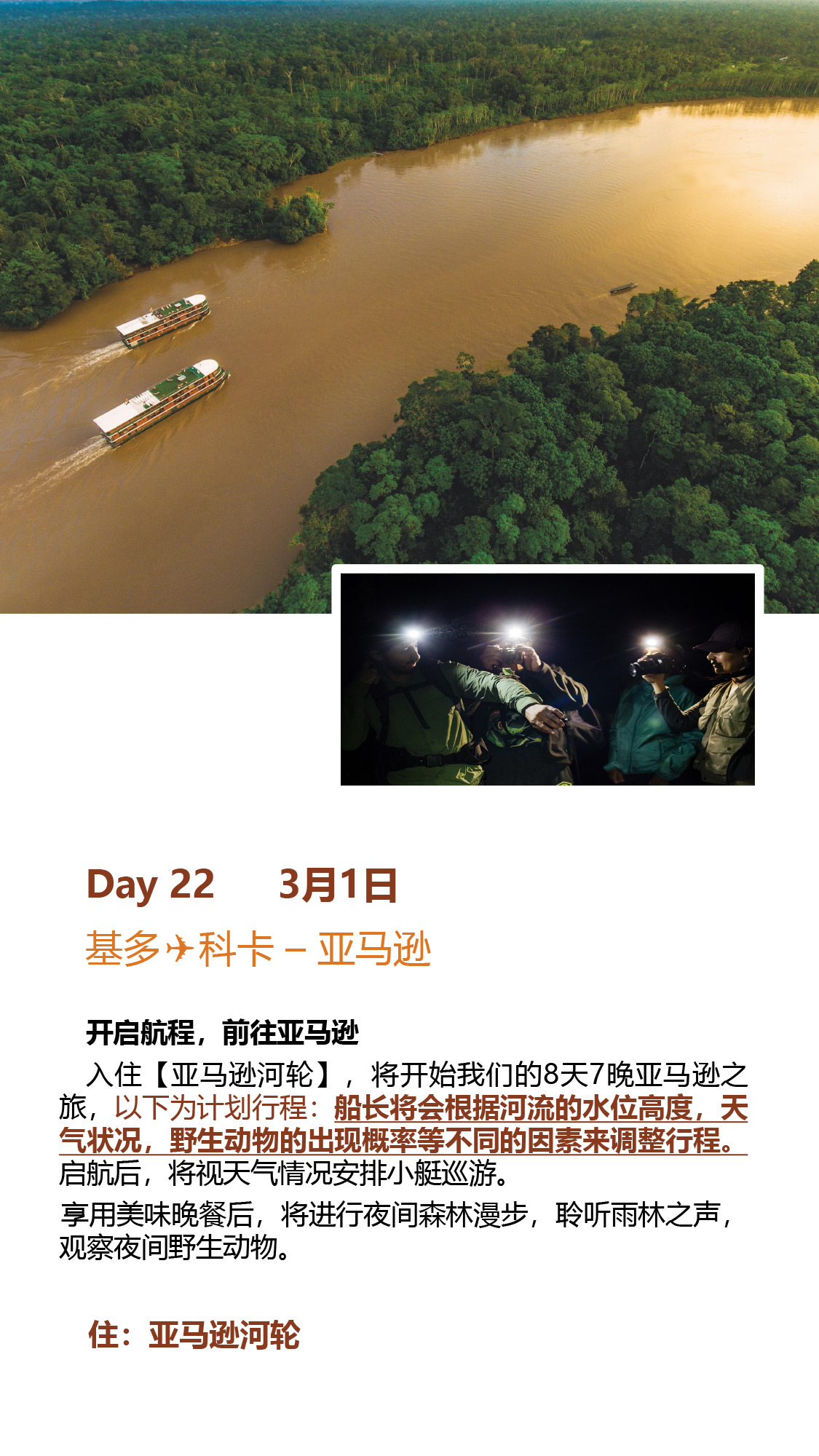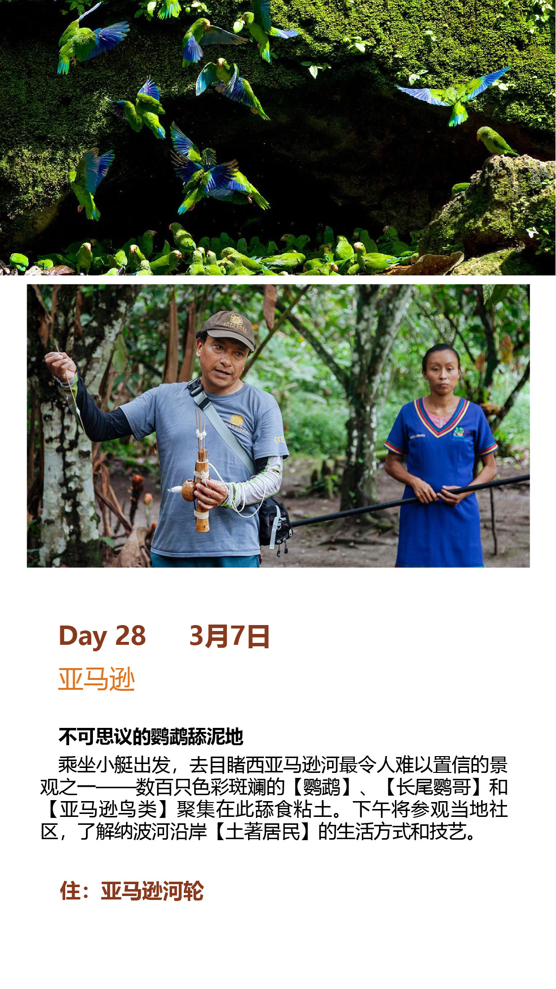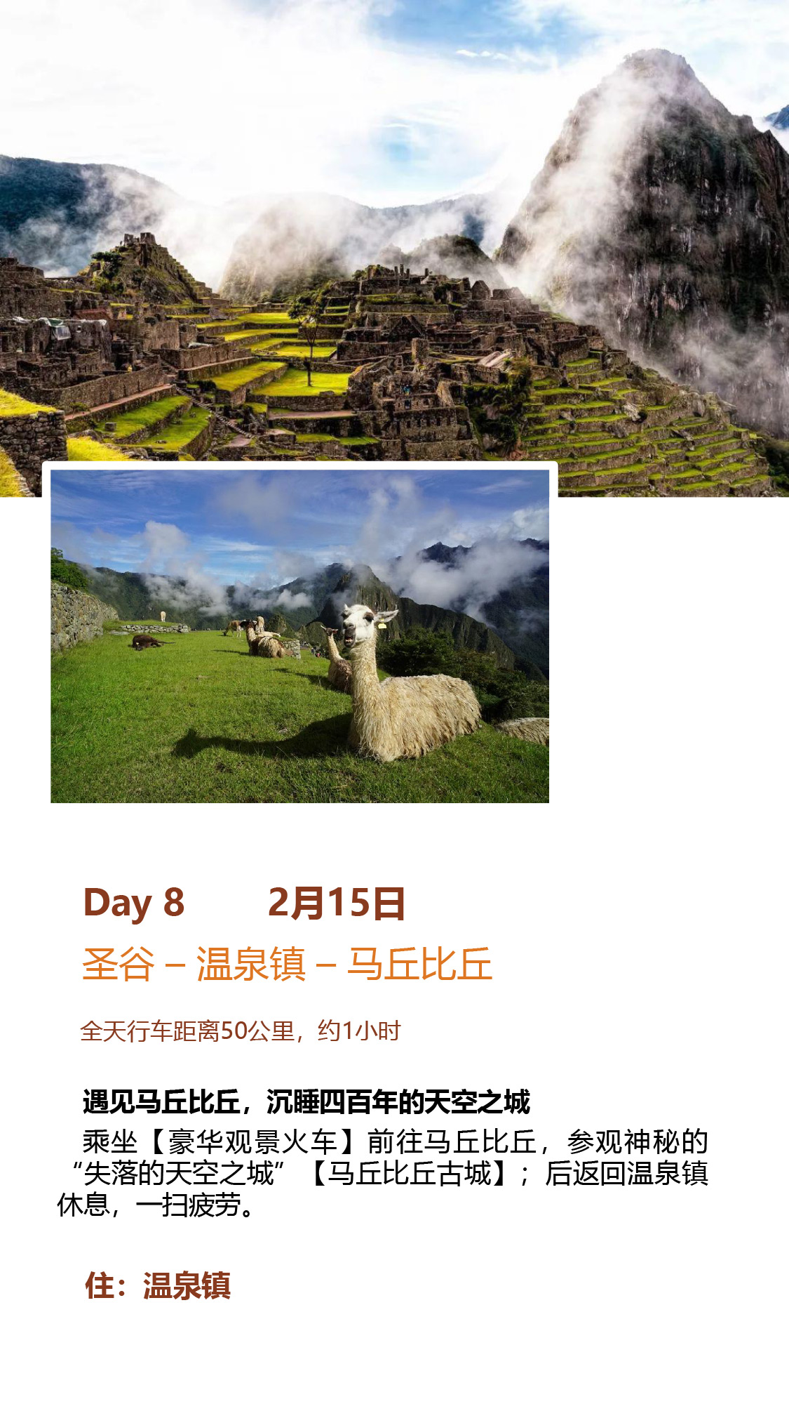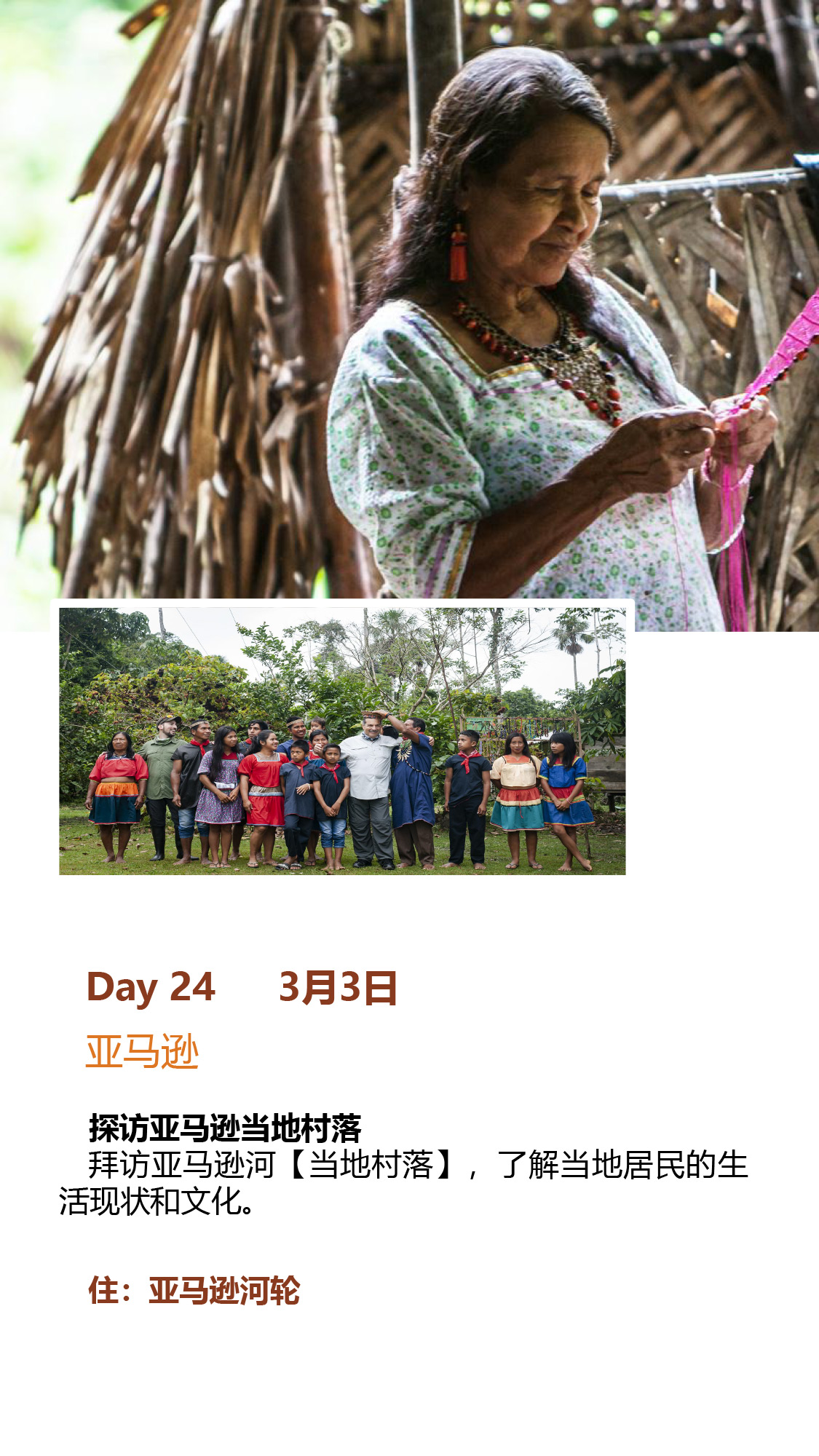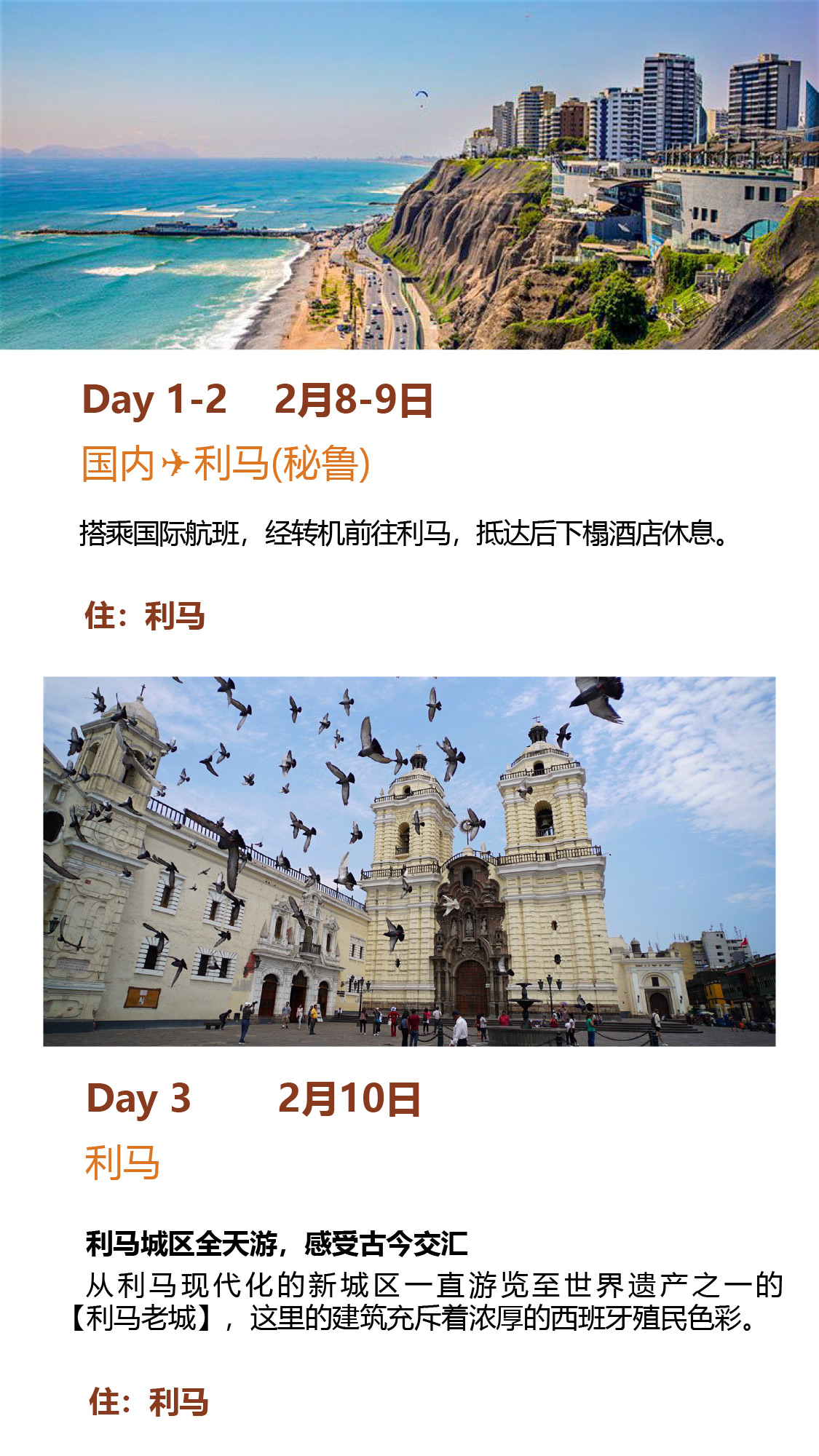 美到窒息的“天空之镜”——乌尤尼盐沼;失落的天空之城——马丘比丘;印加帝国“实验室”——奇幻的莫雷梯田;神秘文明的杰作——纳斯卡神秘地画;印加时期的圣湖——的的喀喀湖;印加帝国第二大城市——基多老城;进化论的起源——加拉帕戈斯群岛;地球之肺——亚马逊雨林;一晚难求的网红住宿——盐宫酒店;豪华甄选 全景透明观光列车;惬意的雨林探险亚马逊五星游轮;