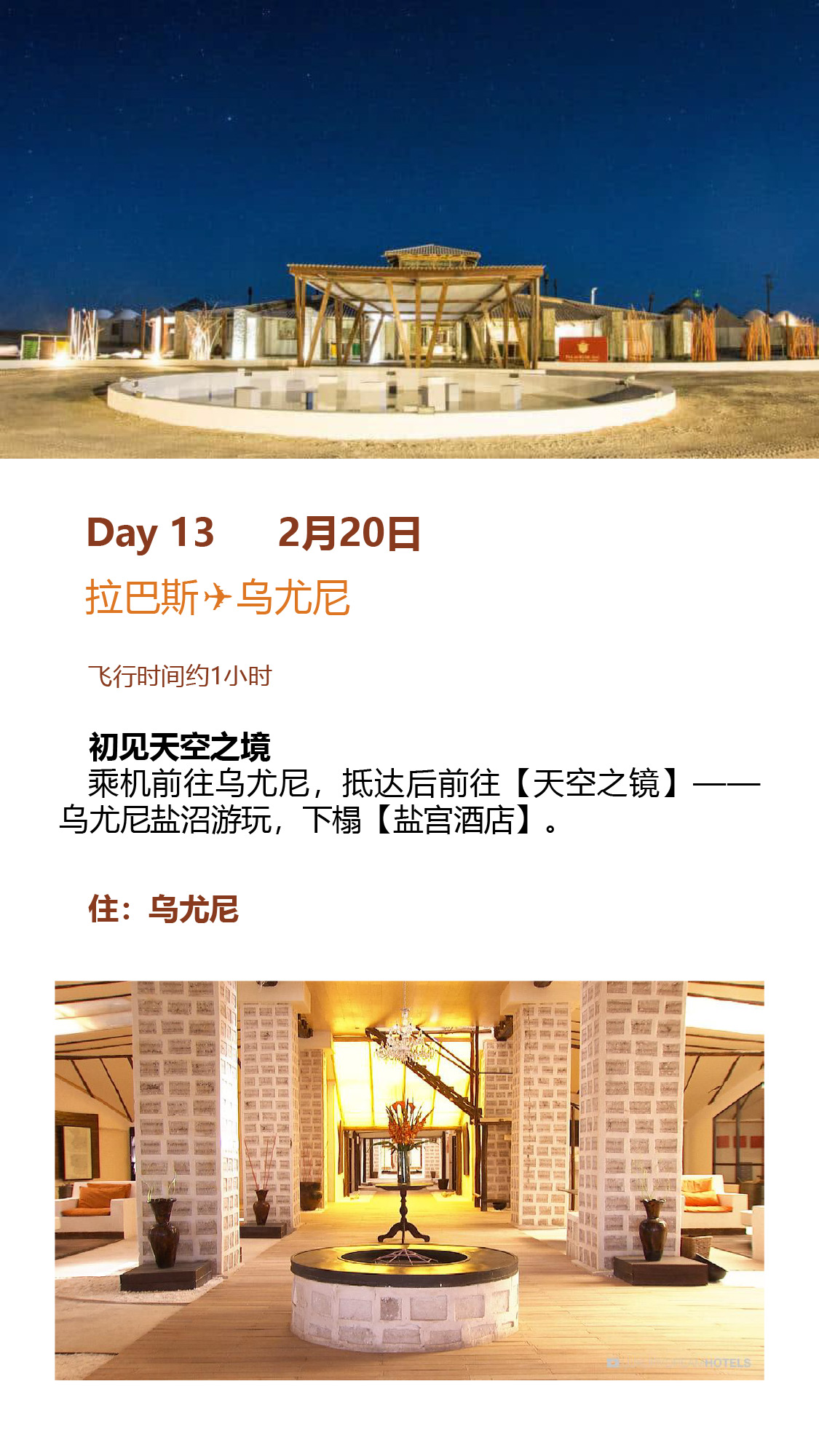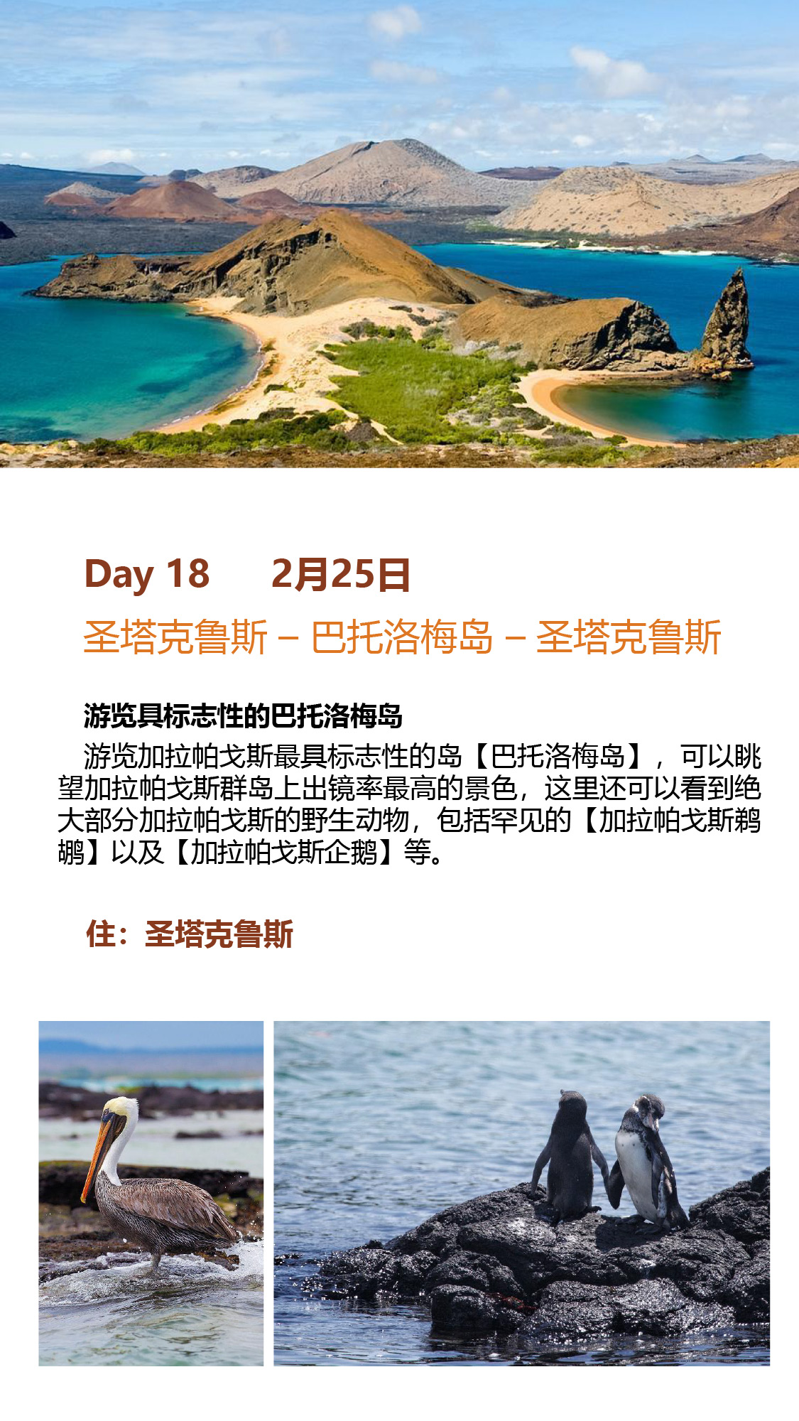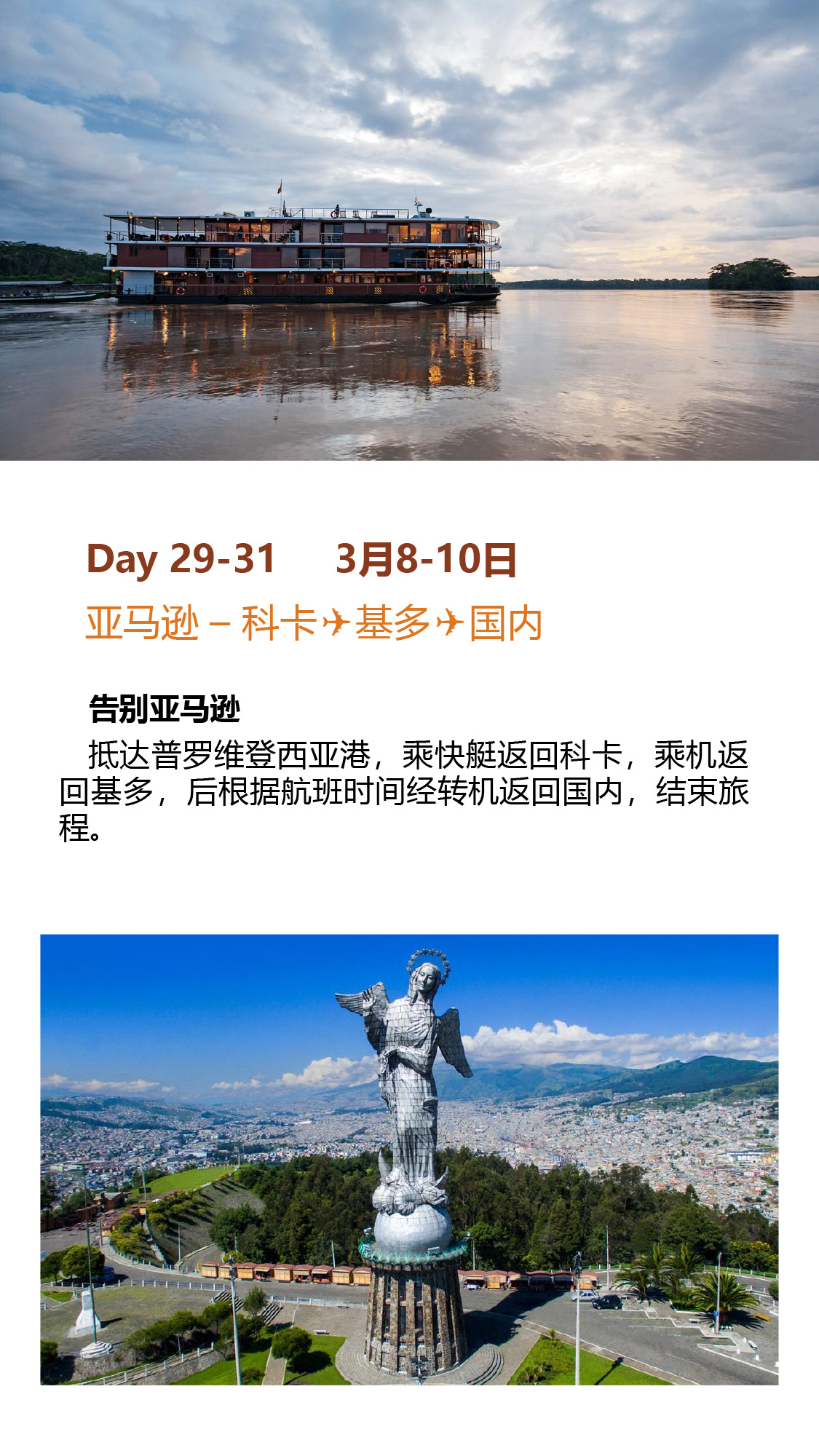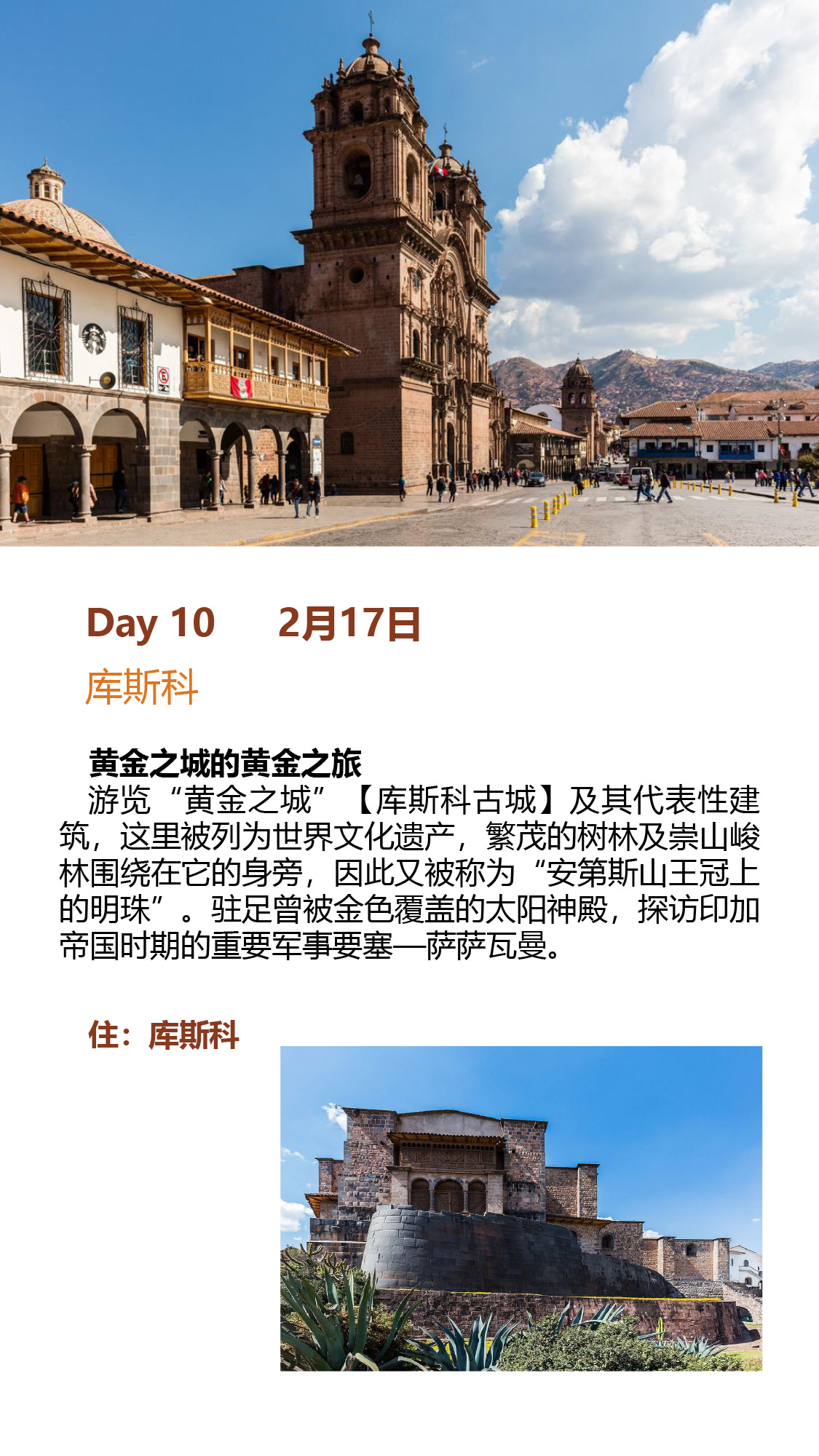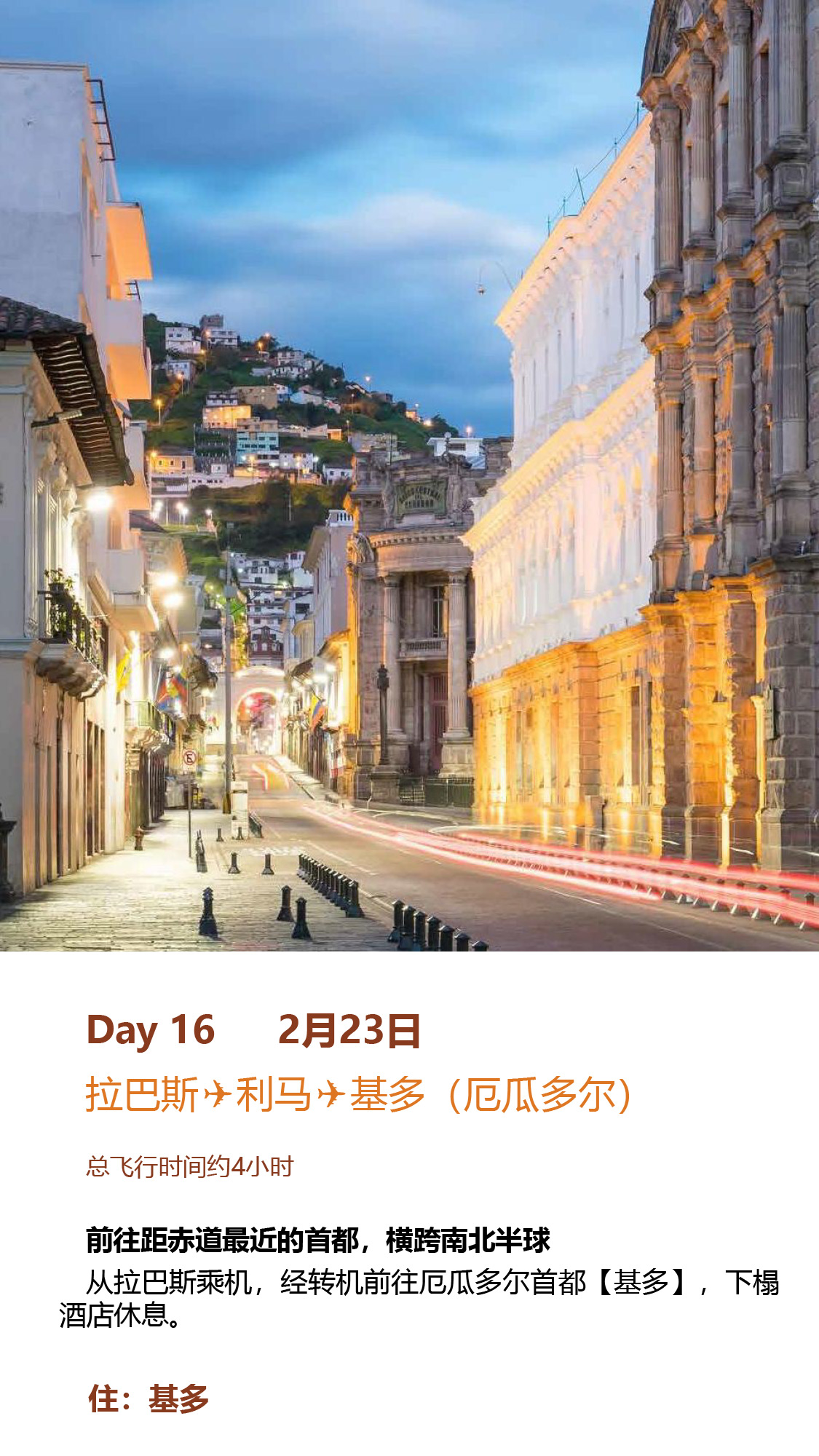 美到窒息的“天空之镜”——乌尤尼盐沼;失落的天空之城——马丘比丘;印加帝国“实验室”——奇幻的莫雷梯田;神秘文明的杰作——纳斯卡神秘地画;印加时期的圣湖——的的喀喀湖;印加帝国第二大城市——基多老城;进化论的起源——加拉帕戈斯群岛;地球之肺——亚马逊雨林;一晚难求的网红住宿——盐宫酒店;豪华甄选 全景透明观光列车;惬意的雨林探险亚马逊五星游轮;