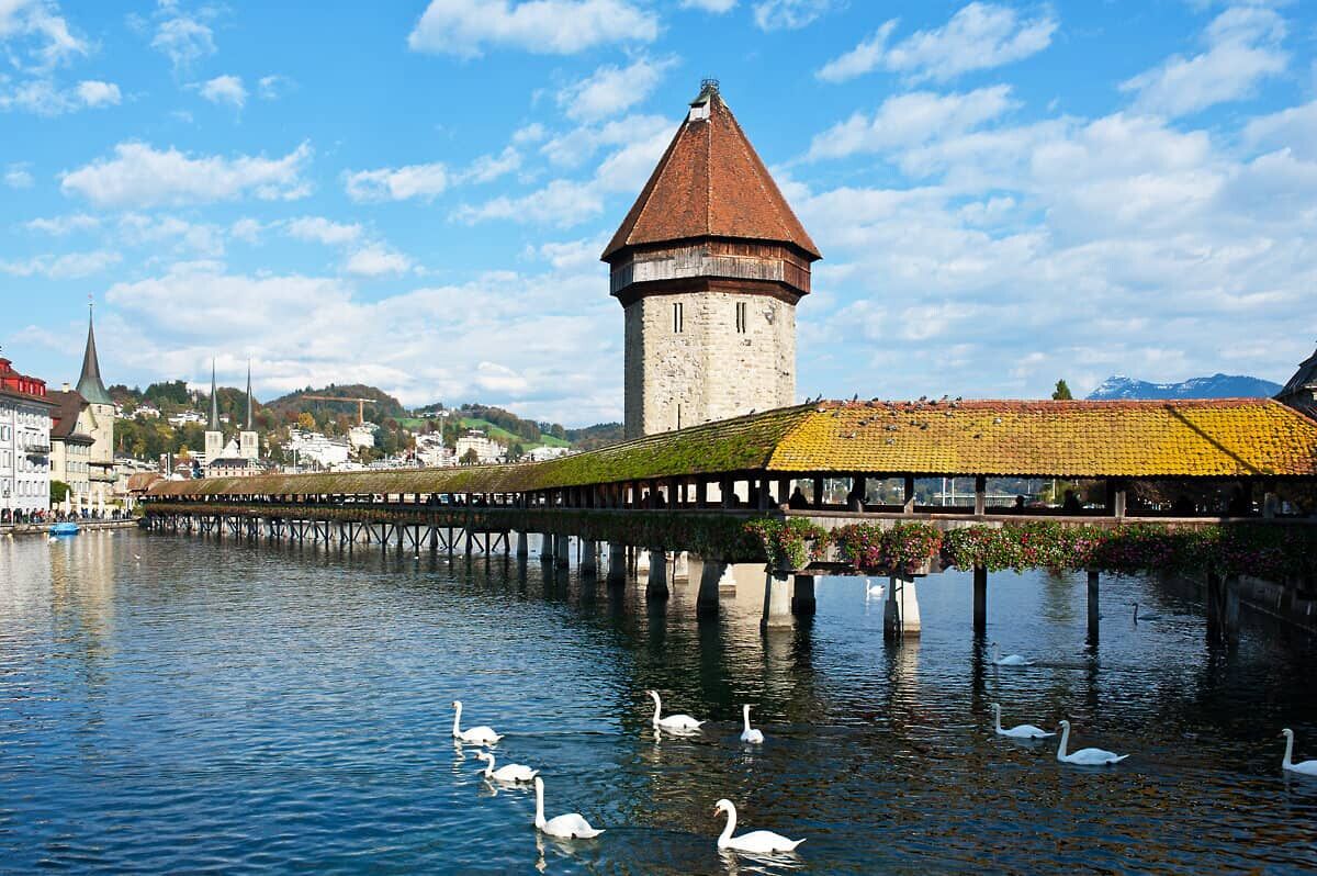 前往卢塞恩,进行城市游览:垂死狮子像、水塔花桥、穆塞格城墙等。
