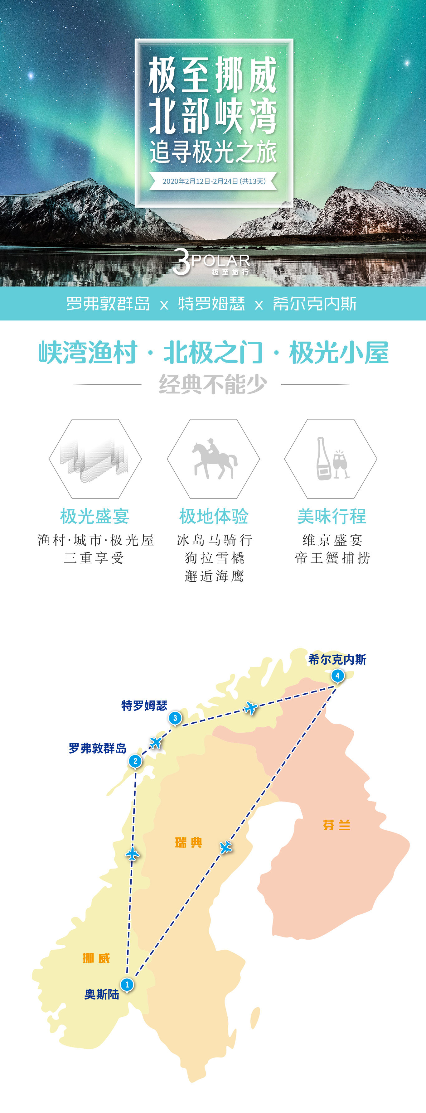 最美罗弗敦/特罗姆瑟追寻极光/希尔内斯科帝王蟹
