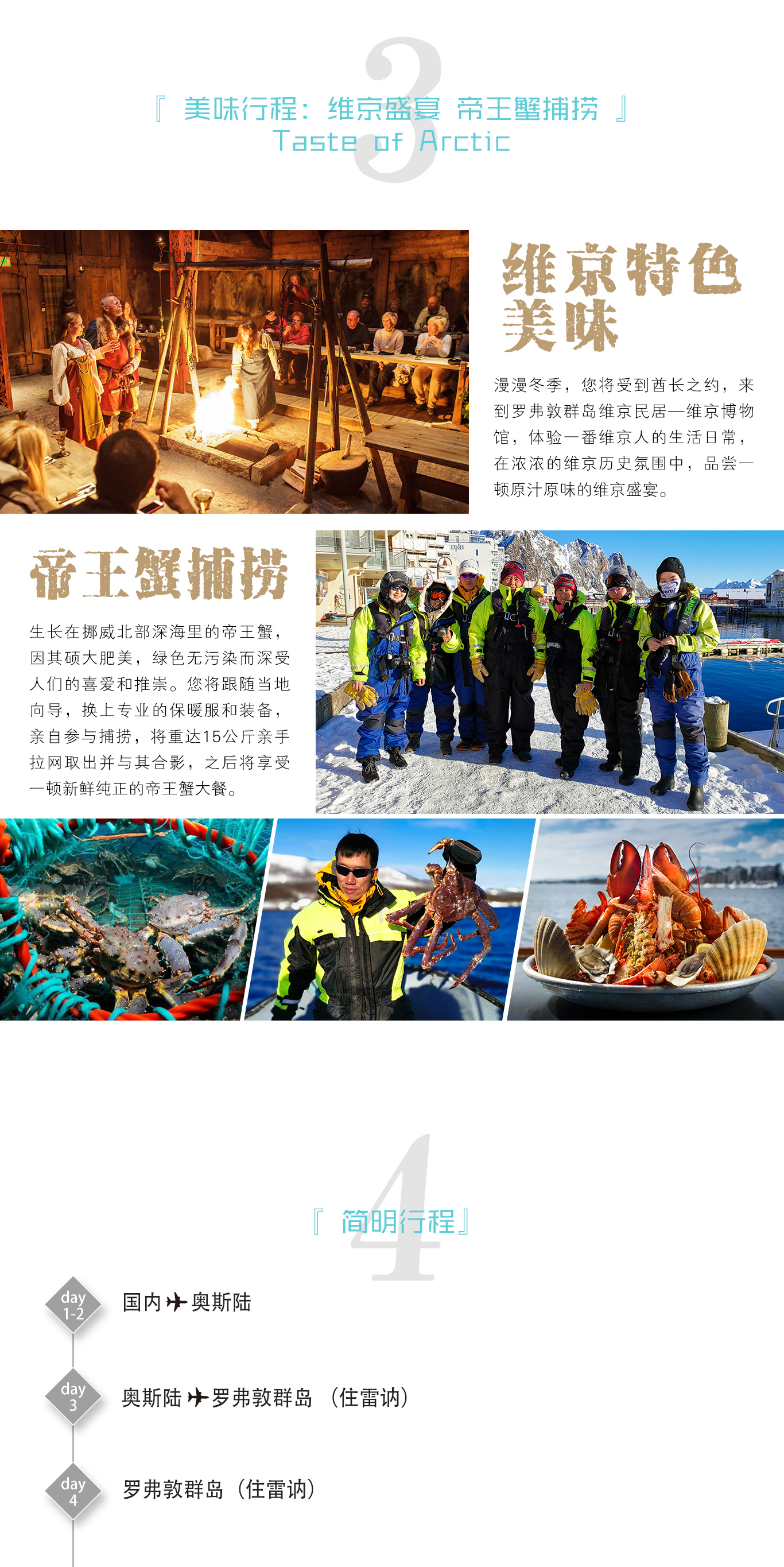※ 帝王蟹捕捞:生长在挪威北部深海里的帝王蟹,因其硕大肥美,绿色无污染而深受人们的喜爱和推崇。其含有丰富的蛋白质、微量元素等营养,对身体有很好的滋补作用。