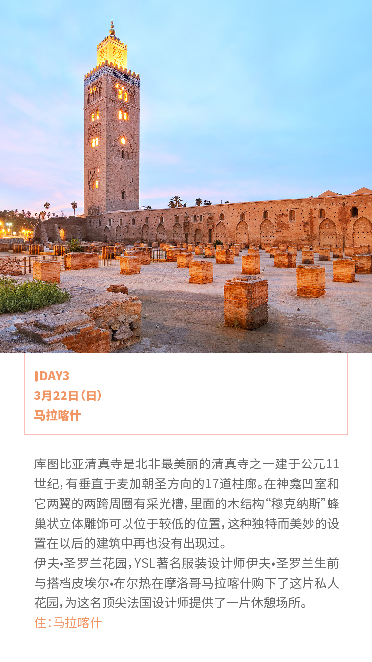卡萨布兰卡,浪漫的白色之城;骆驼落日骑行,走进YSL博物馆了解时尚艺术之源