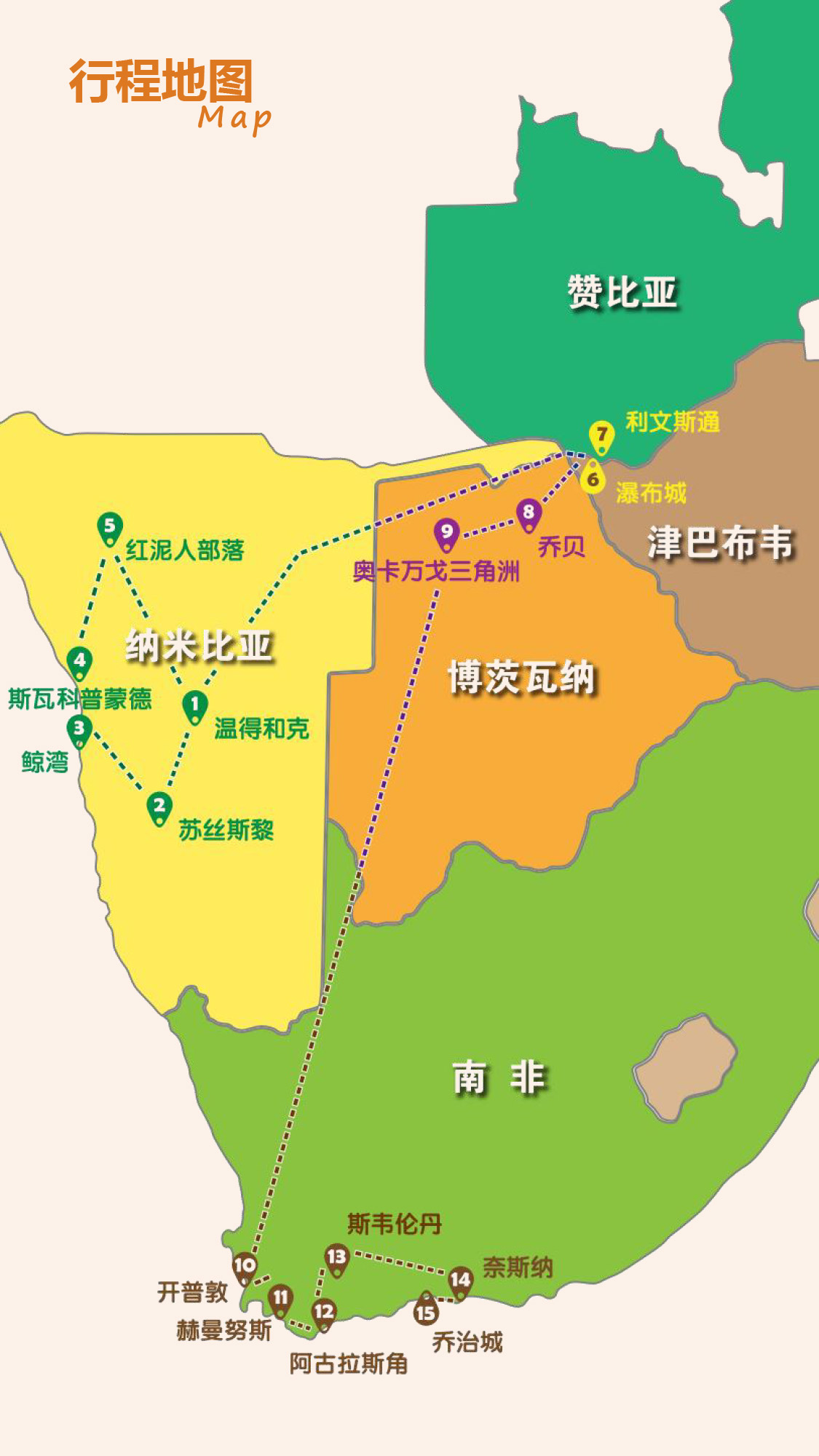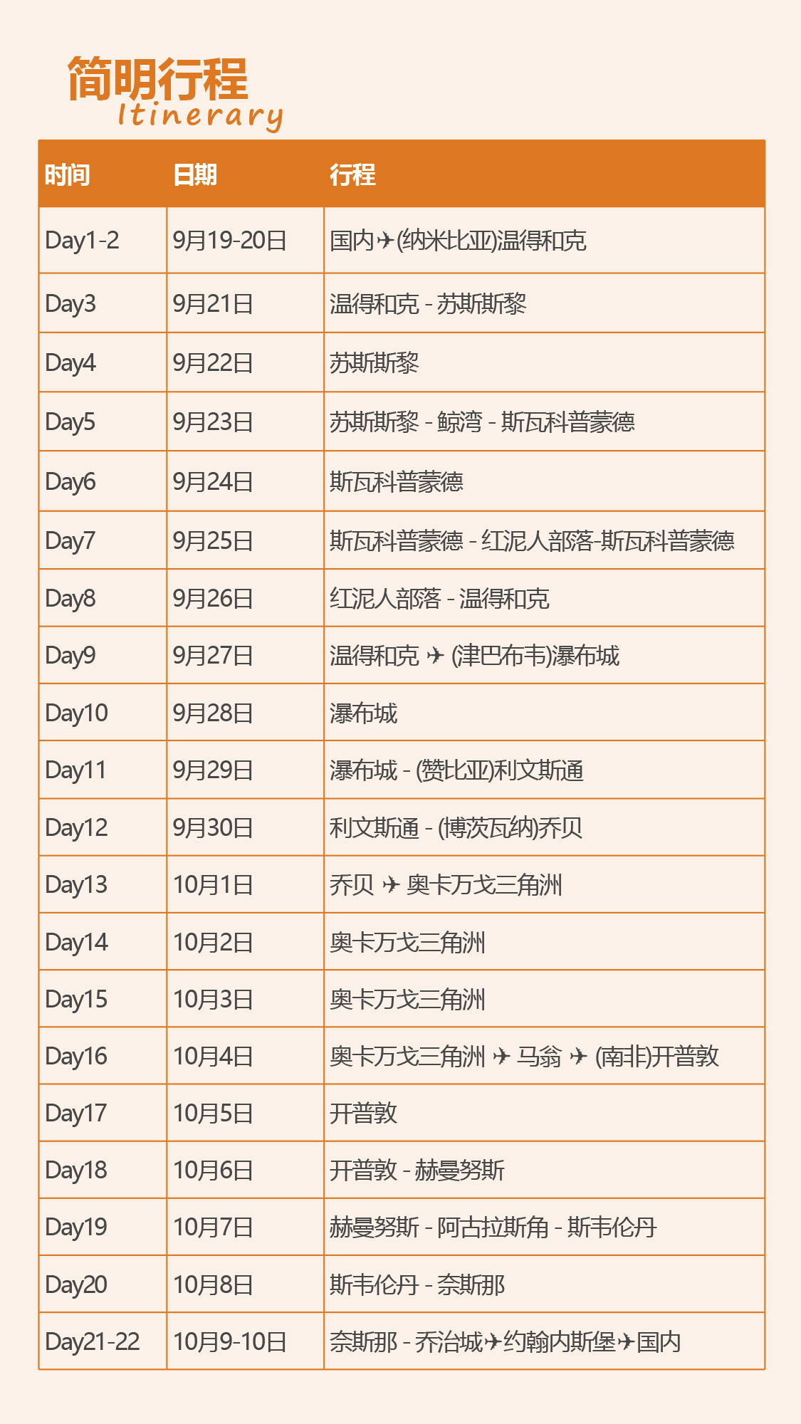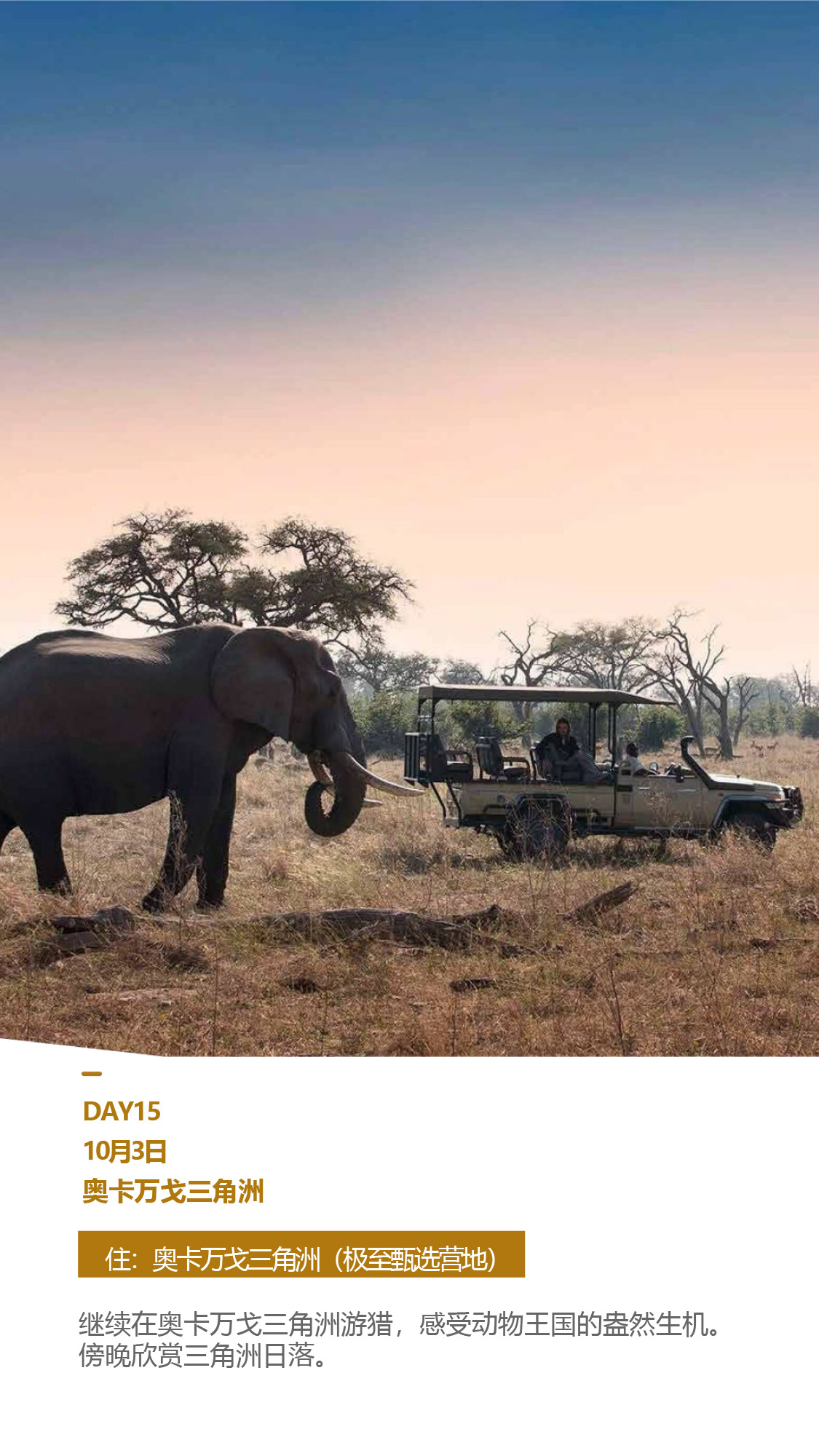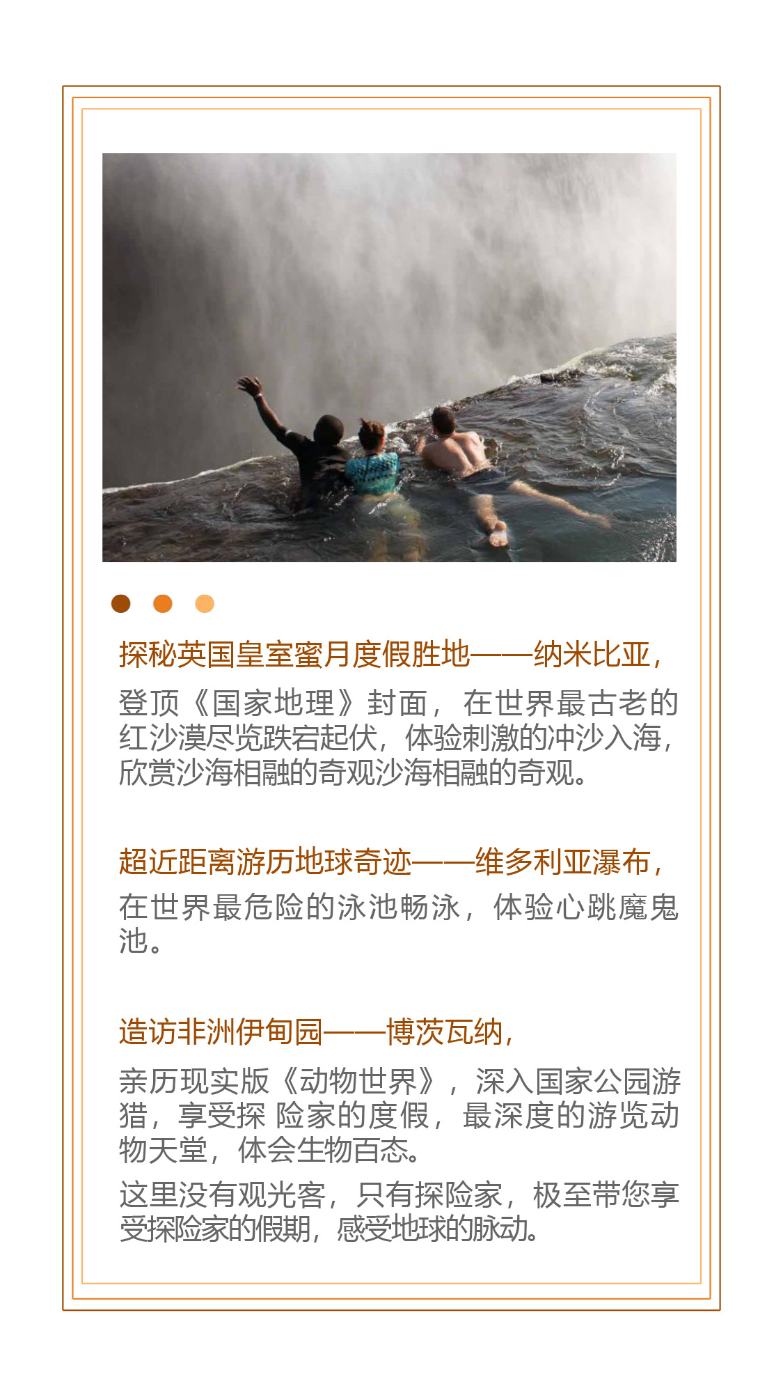 探秘英国皇室蜜月度假胜地——纳米比亚;超近距离游历地球奇迹——维多利亚瀑布;造访非洲伊甸园——博茨瓦纳